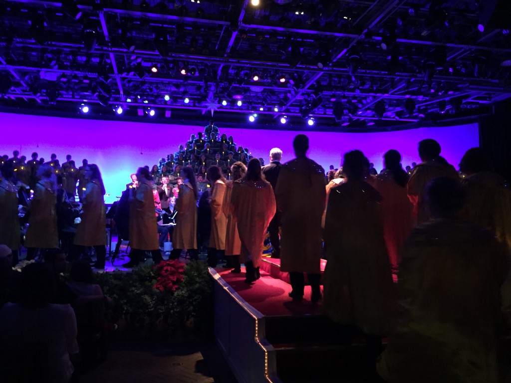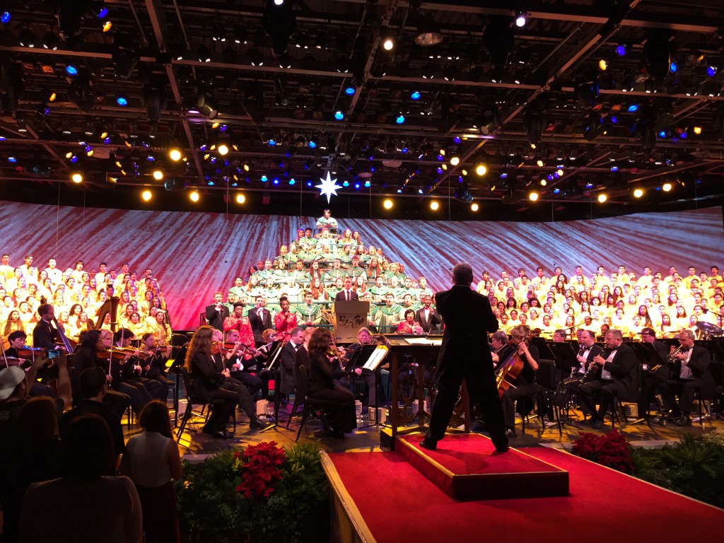 As part of the Candlelight Processional hundreds of Cast Members from all around Walt Disney World Property, thousands of local school choir members, over 50 skilled musicians, and 13 different celebrity narrator take the stage as many as 3 times a night to tell the story of the Nativity throughout the almost 100 performance.