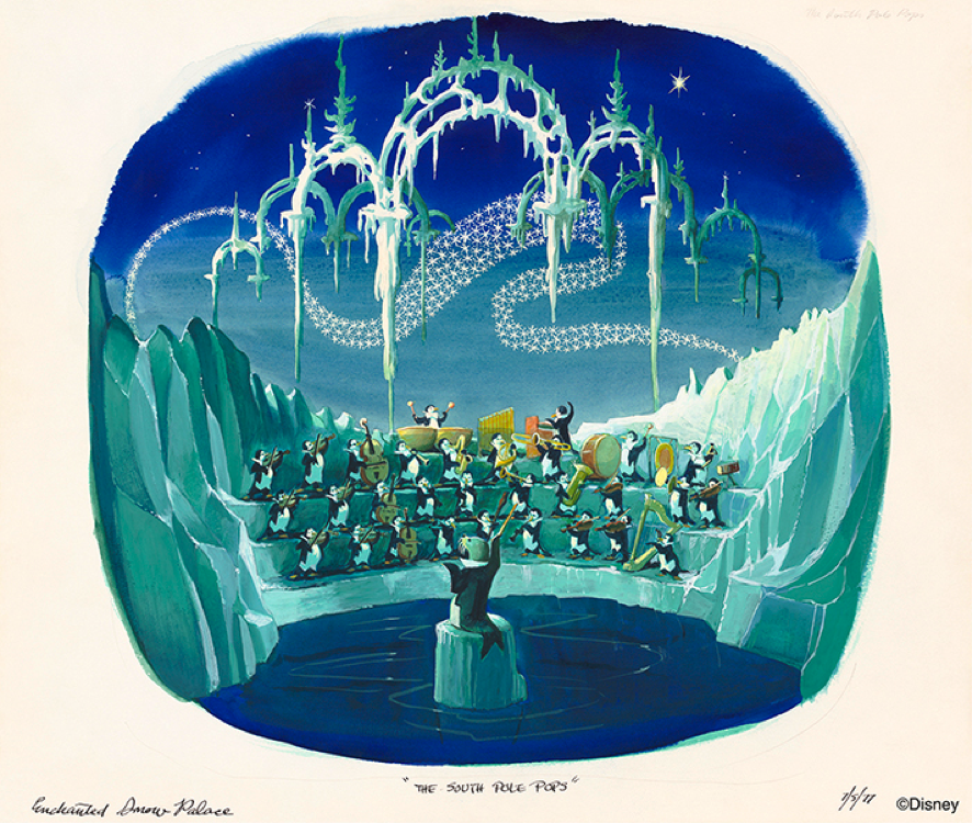 A piece of Marc Davis’ concept art of the Enchanted Snow Palace attraction, which was never built. ©Disney