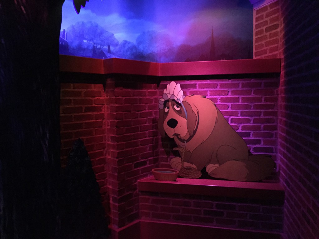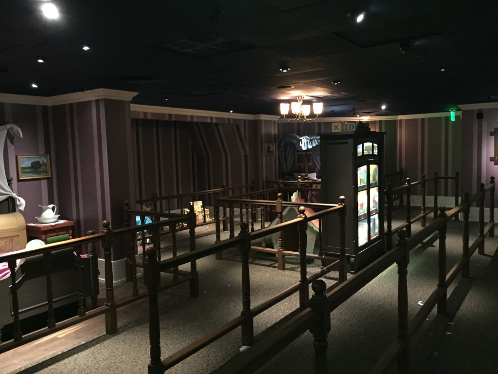 As part of the continuing effort to expand what used to be just chains and switchbacks into "Scene 1" of attractions, WDI took former the former bathroom space and magicalyl turned it into new queue area for Peter Pan's Flight.