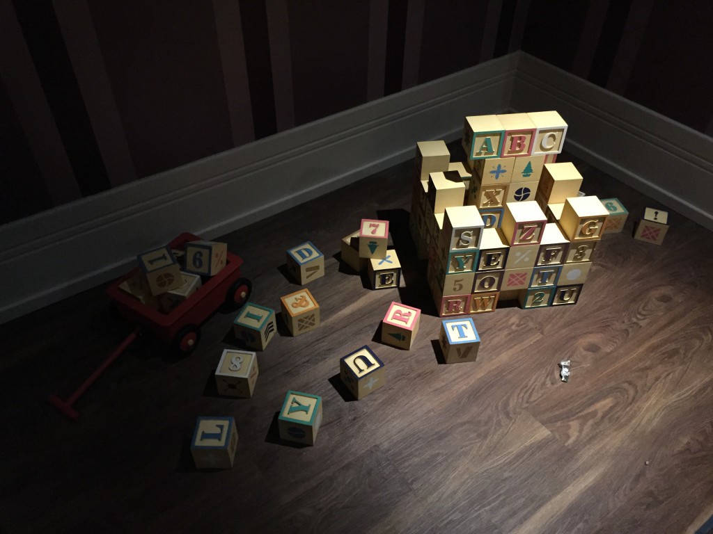 Then onto Michael's bed with the blocks all set up by Nana before being sent outside.