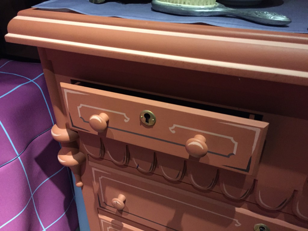 Of course the focal point of the room is Wendy's bed including the dresser drawer that is still left a little open...