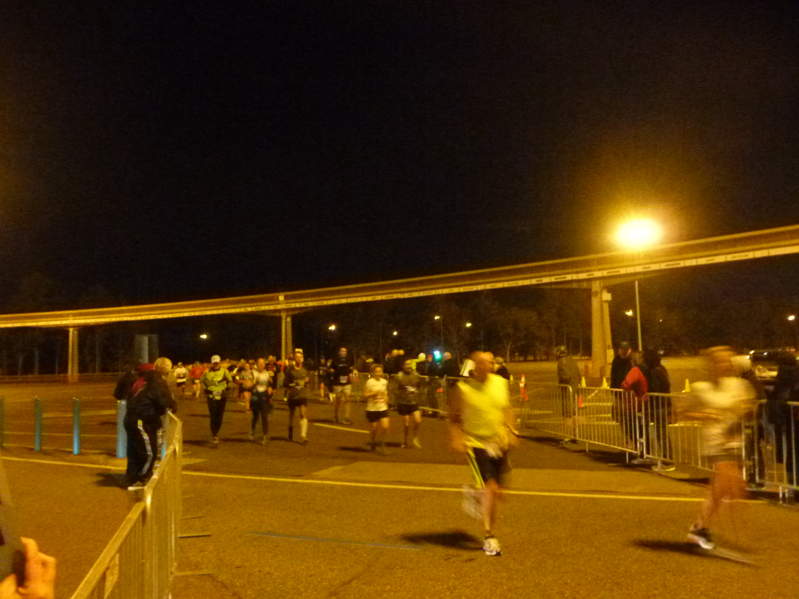 The weather was warmer than the two previous races, but still much colder than I had anticipated when packing for the trip. After ditching my foil blanket moments before the start of the race, I quickly realized that it was still quite cold, even while running. A few hundred yards into the race I stopped and picked up a sweatshirt that another runner had discarded, which kept me warm for a few miles. I have no idea who previously wore it, but I’m grateful they left it where they did. There’s no dignity in distance running.