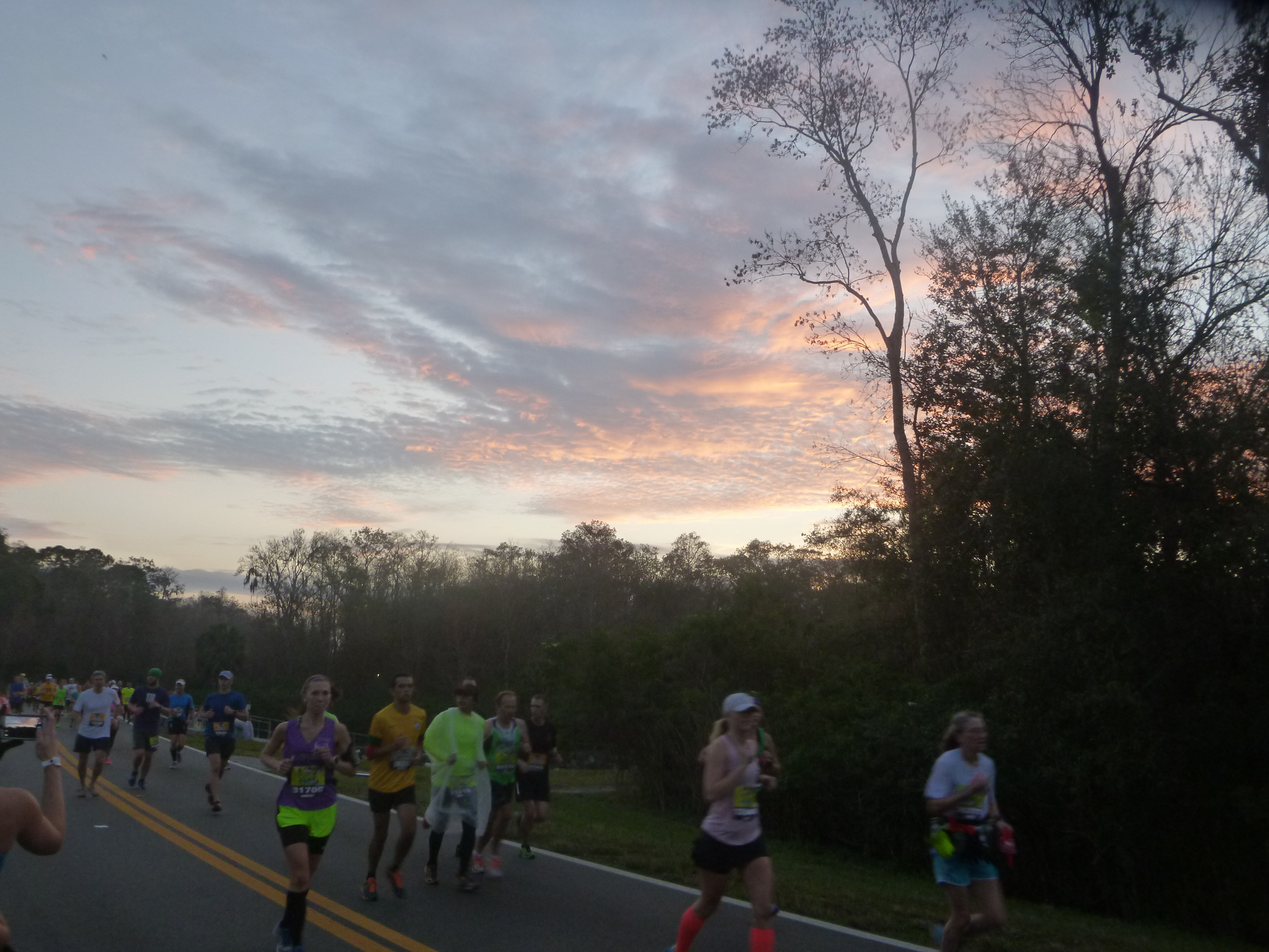 This was my 5th time running this course, not including times I’ve run the Marathon which also uses a significant portion of the Half Marathon course, so it was kind of nice to just zone out and cruise through it. Knowing the course so well, it was interesting to notice the minor differences along the way, like the lack of construction walls around the Seven Dwarfs Mine Train. The 3 overpasses beginning at mile 10 are always a tough ending, but watching the sunrise over Spaceship Earth made it easy to see that there wasn’t much farther to go.