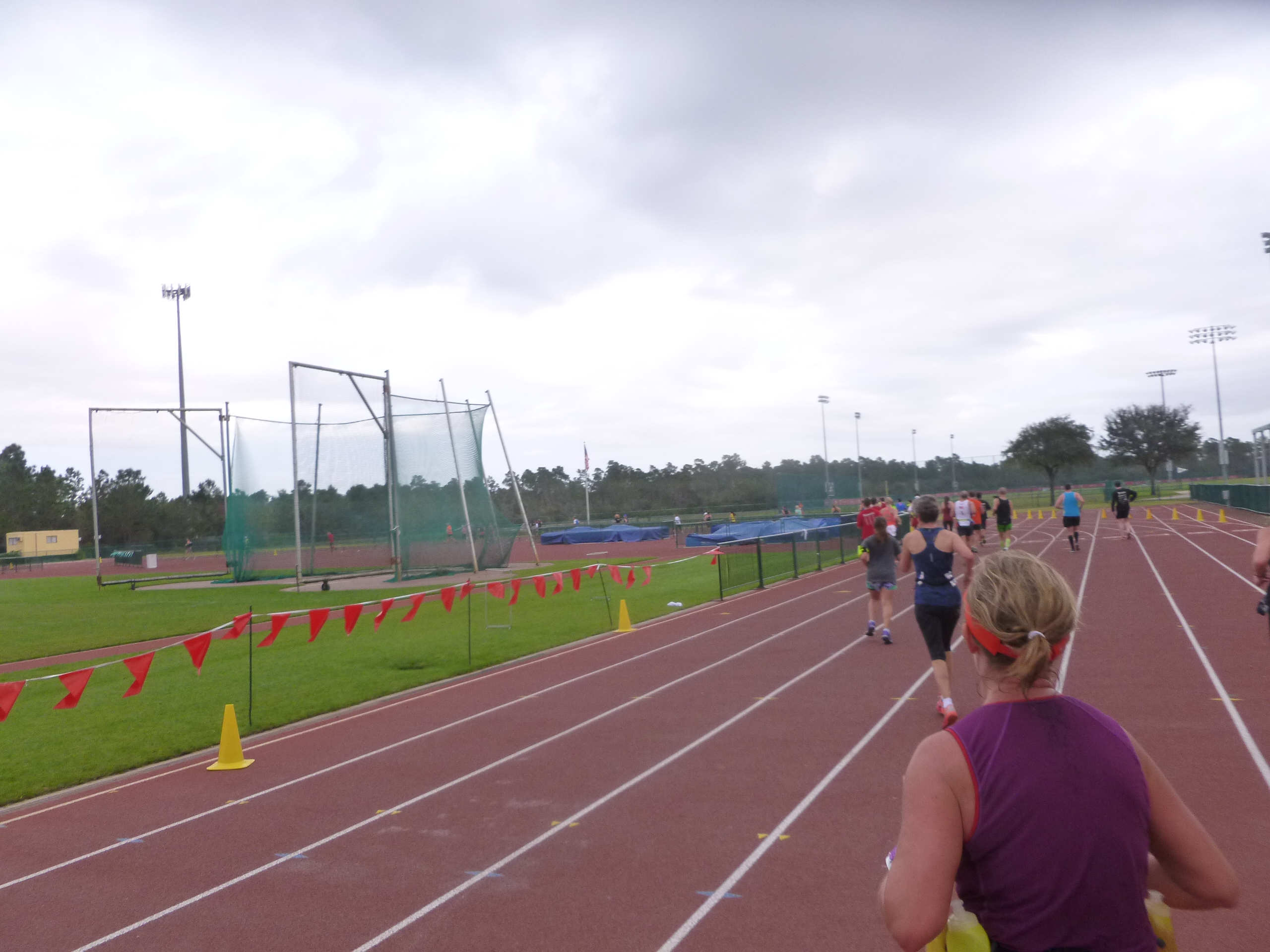 One of my least favorite parts of the course is a relatively recent addition, the Wide World of Sports. Added in 2013 for the Marathon’s 20th year, this portion of the course winds through ball fields, the running track, and Champion Stadium. While it’s not unpleasant, it is very monotonous and one of Disney World’s least unique locales; it looks like any neighborhood park in the country. Additionally, the road into the complex is used for both inbound and outbound traffic, so runners see people who are 3 miles ahead (or behind) them. Seeing people on the return makes it even more difficult mentally, since it is difficult to gage exactly how far ahead of you they are, and how much longer you’ll be stuck in the course’s purgatory. Since this part of the course replaced mileage from an early pass through Epcot at the race’s start on the previous course, it seems like a downgrade in the overall experience.