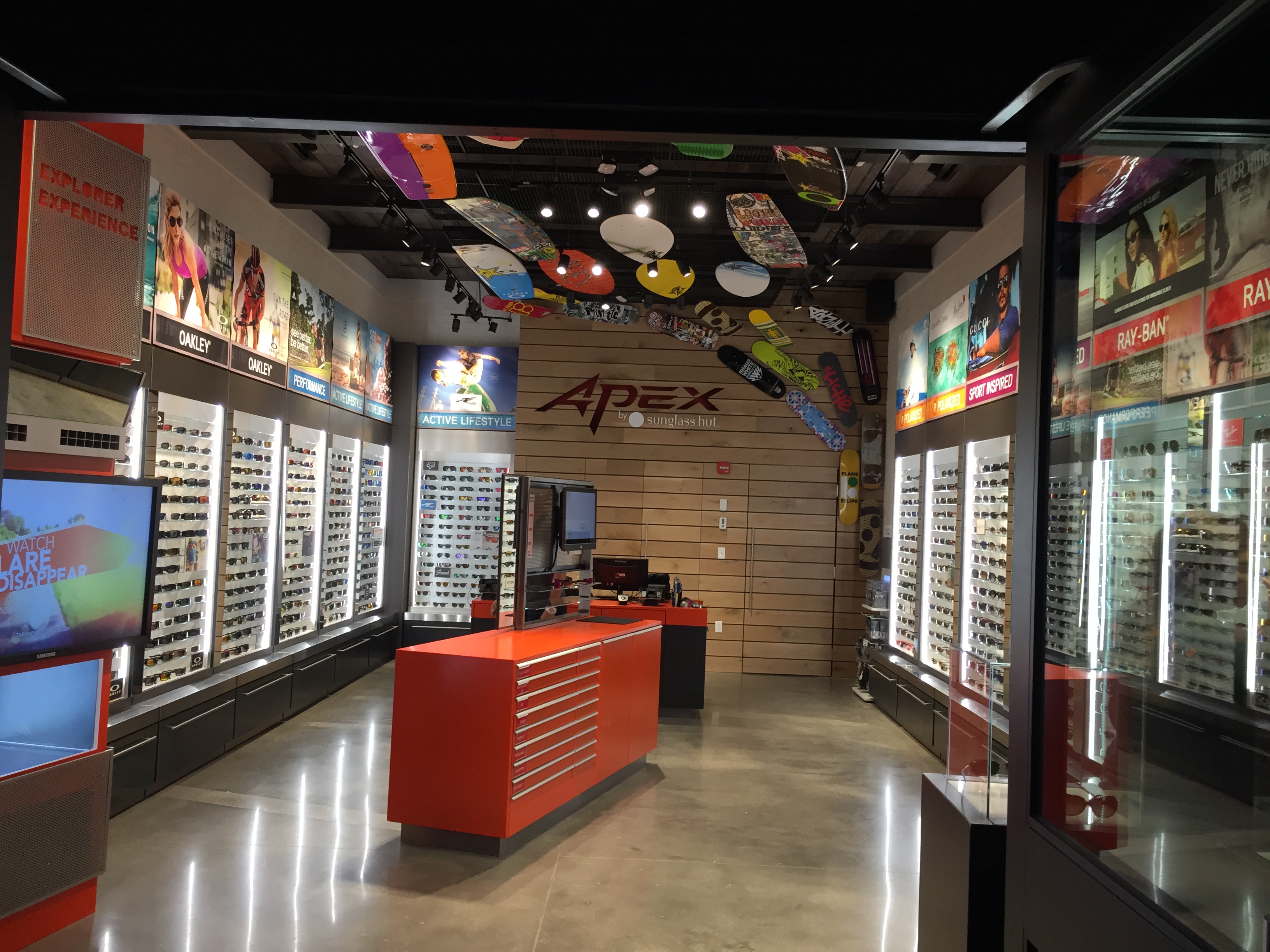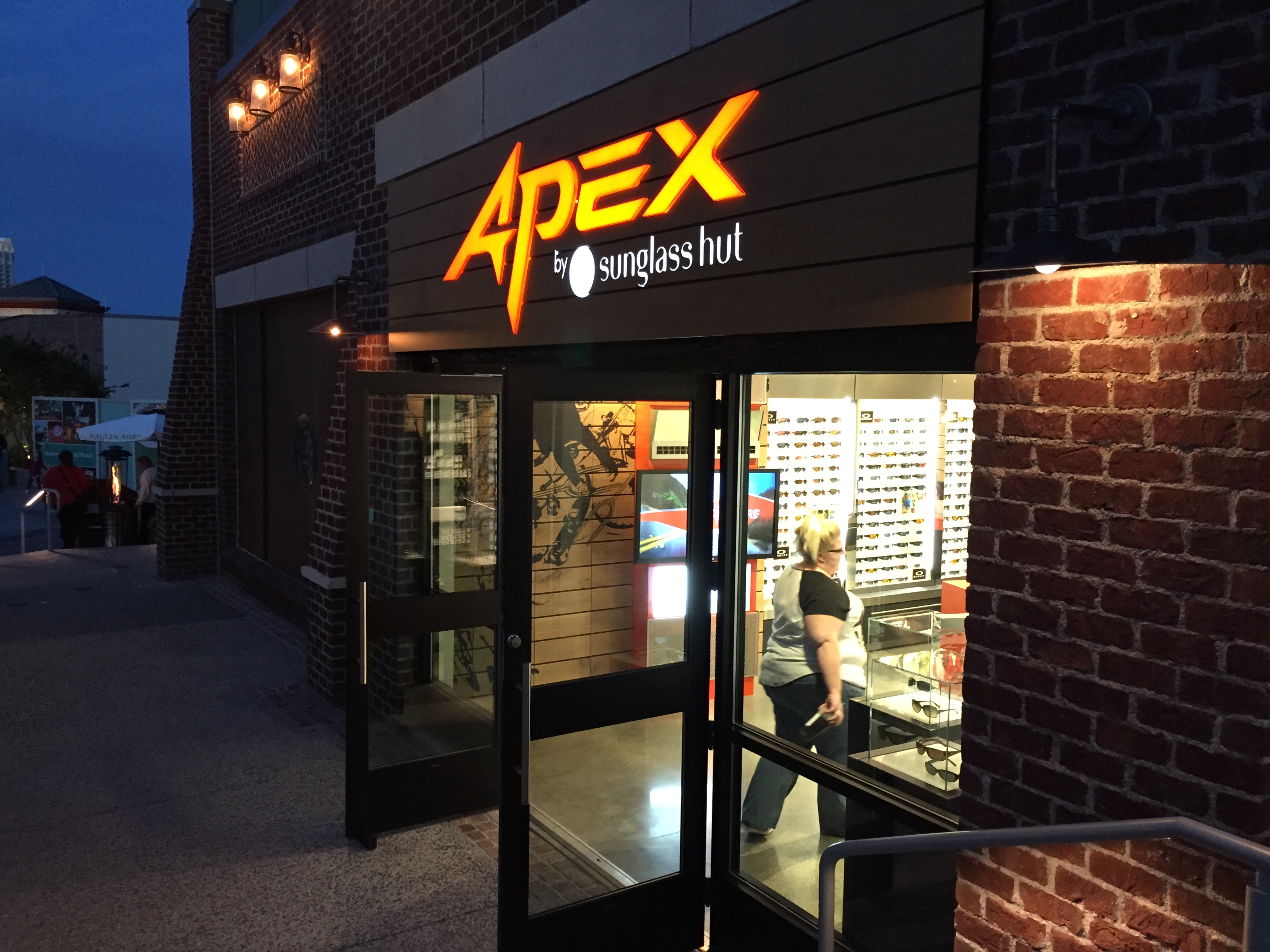 While that area may be still down the road, the former PI area has opened 2 shops. First in the area of what used to be 8-Trax, we have the APEX by Sunglass Hut shop.