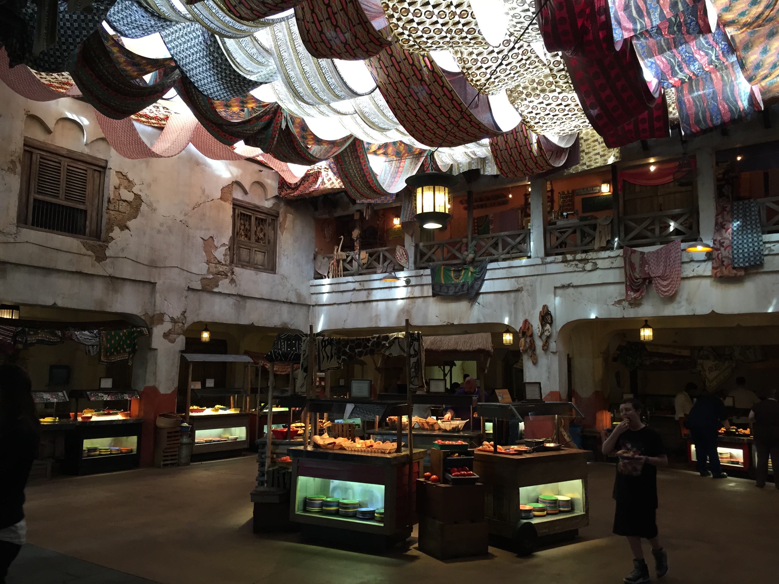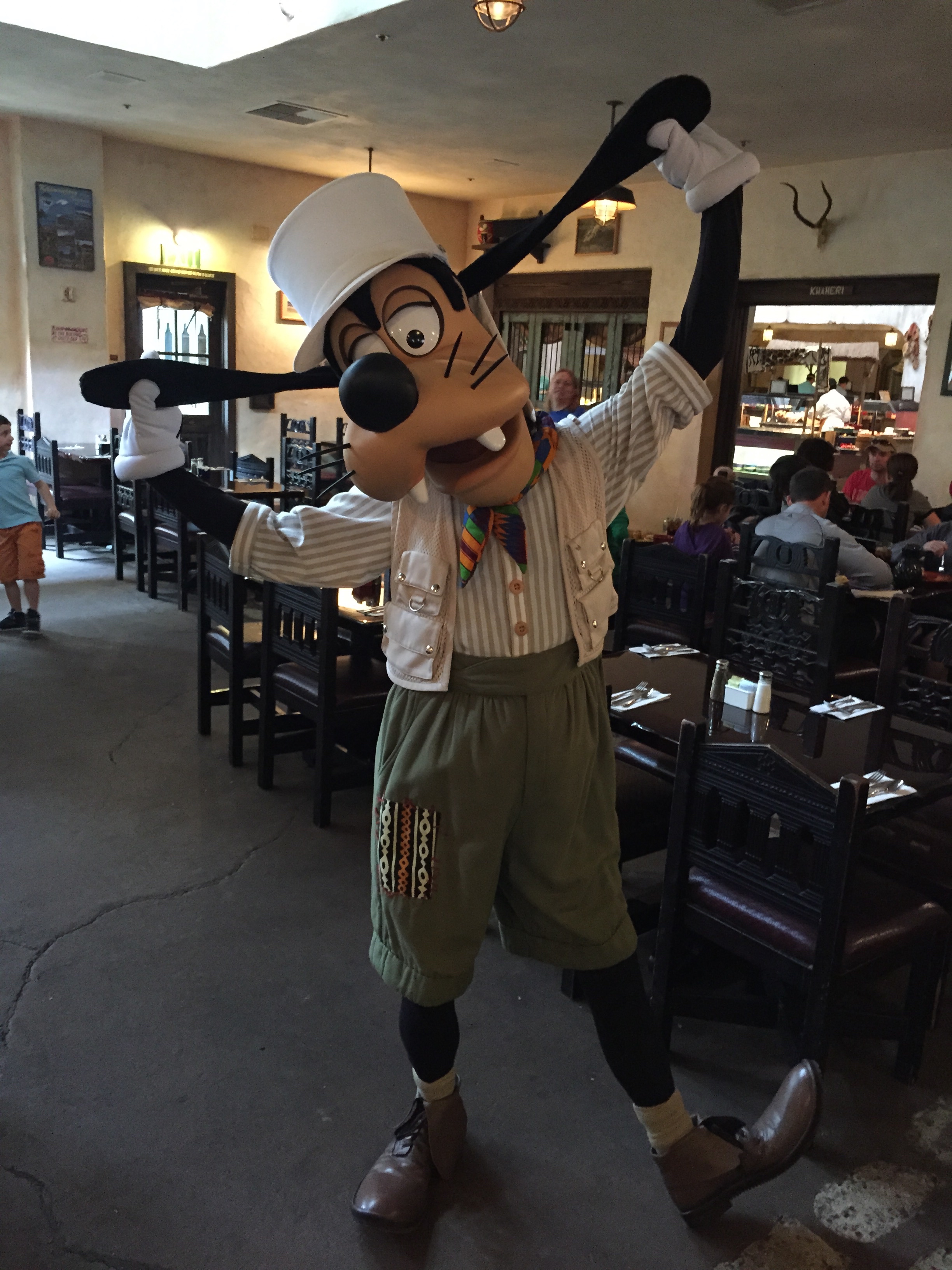 Once you check in outside the direct you to a courtyard where a Photopass person will take a family photo in from of a wall of masks and you wait till you are called in. As you head in you see the buffet as a great tease while you are escorted to your table, from there it is the norm...order drink, get food, take pictures with the character, and repeat!