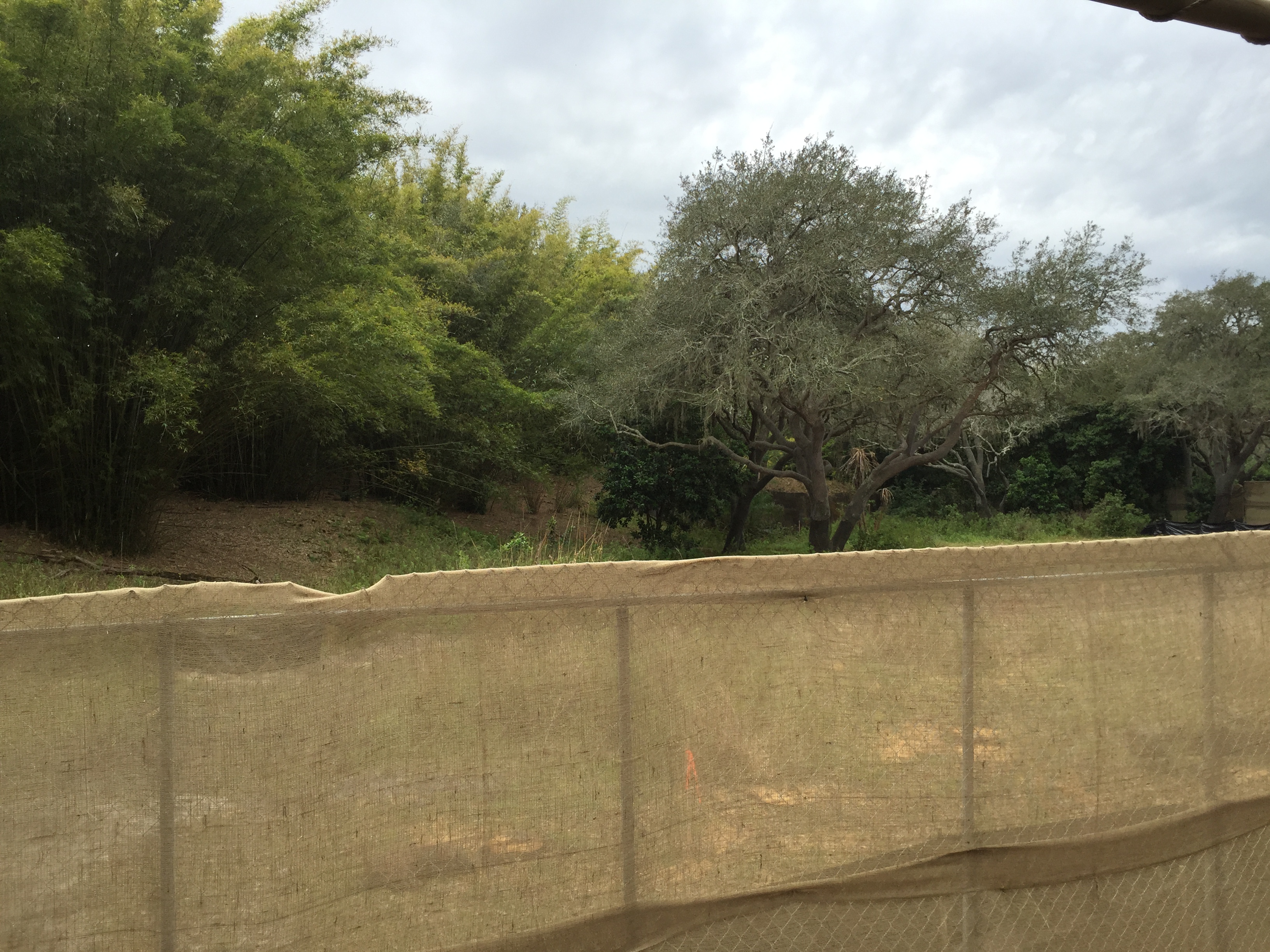 On this overcast cold day there was a lot of activity on the safari mostly causing the trucks to stay backed up all the way to the savanna area. Speaking of the savanna are this corner is fenced off for some work, looked like landscaping but one thing we have learned is you never know what animals you will see on the safari!
