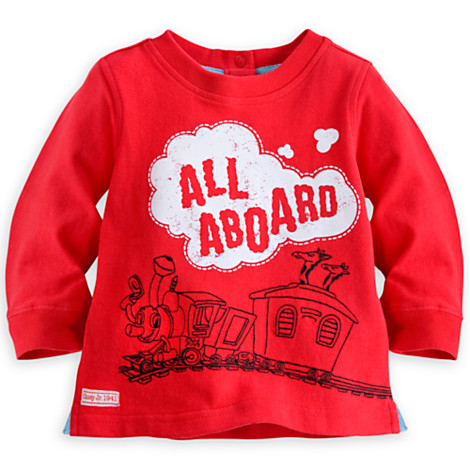 Everything about this shirt fabulous. First of all, it is Casey Jr. and even has his famous line, “All Aboard”, written in the steam. And it just adore that the art wraps around to the back of the tee.