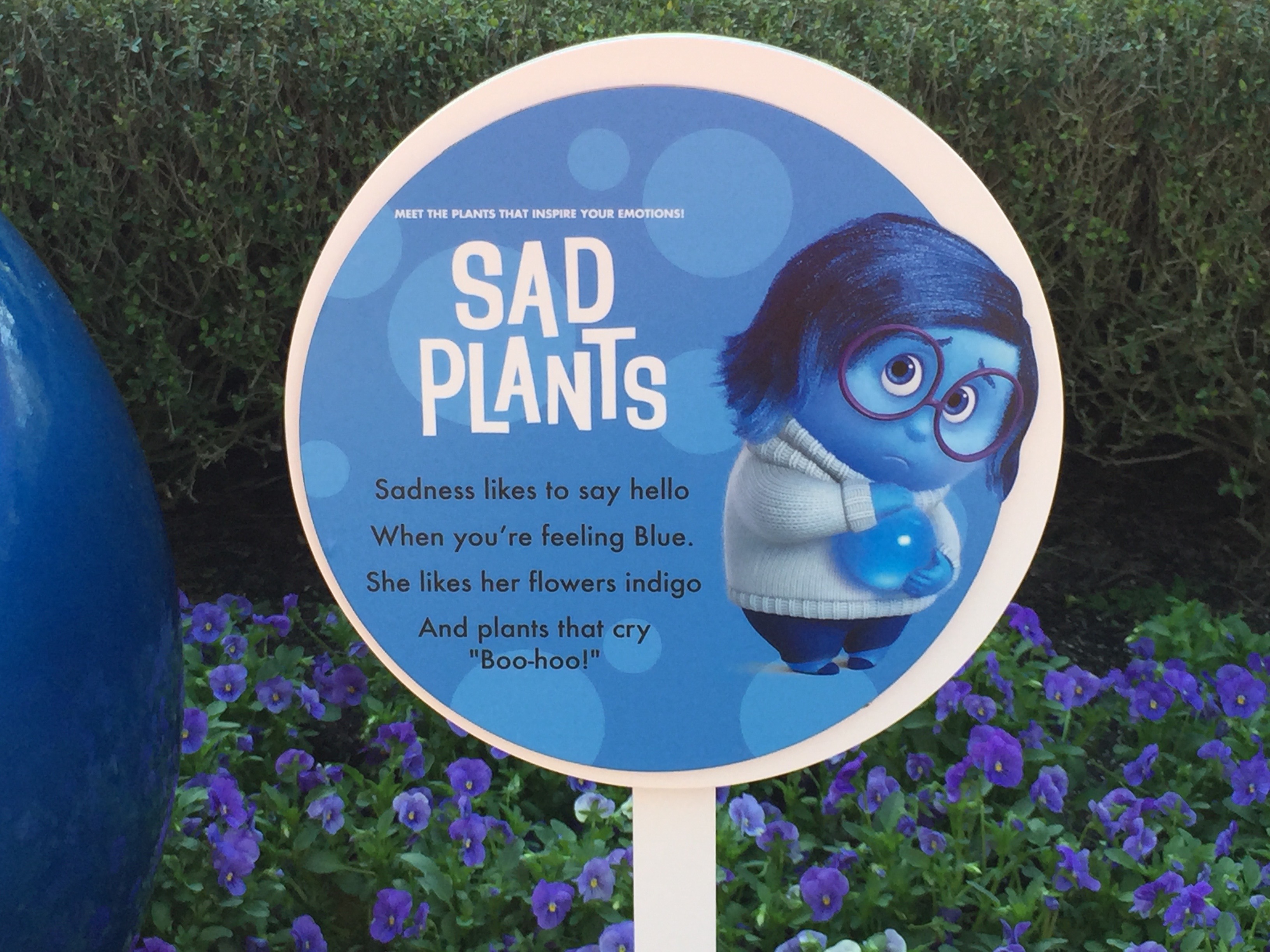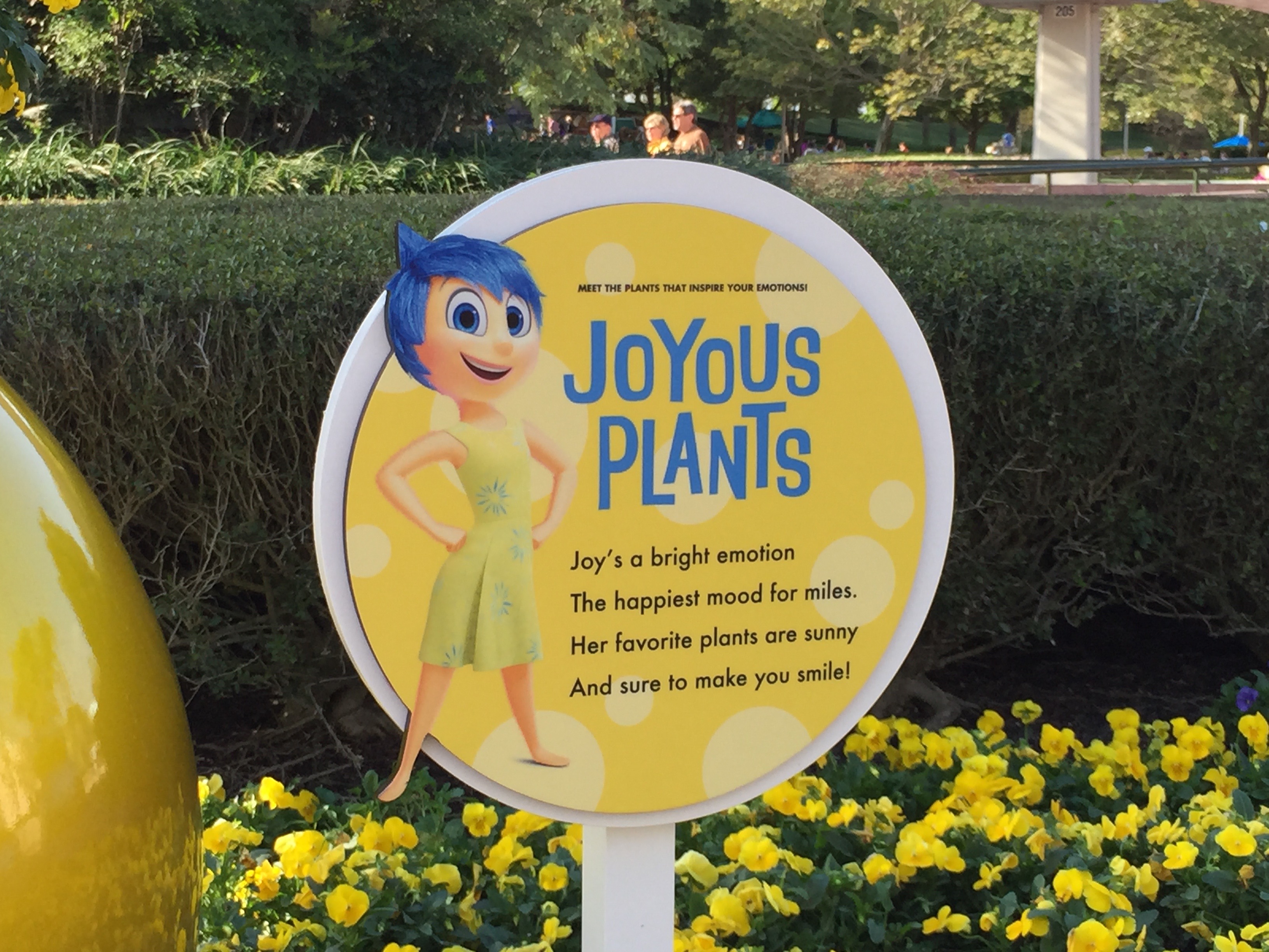 Also one of my favorite additions to this year has to be the Disney*Pixar Inside Out Emotion Garden, which is just a small area just outside of Journey Into Imagination, but the richness of the colors and the basic storytelling comes through so well!