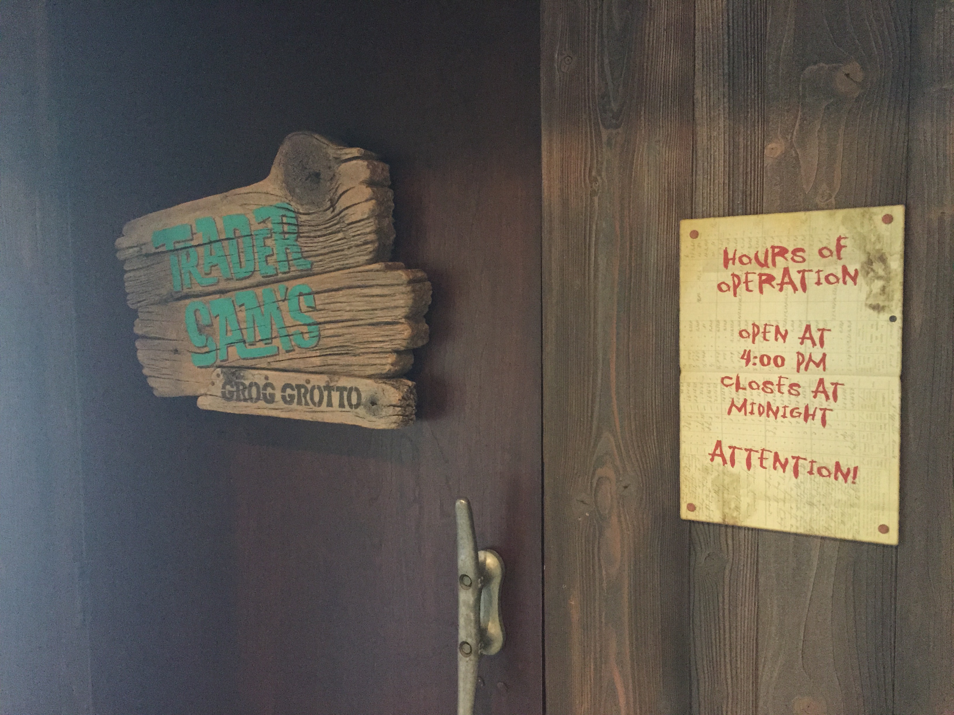 So now we jump in our DeLorean and set the time circuits for March 28, 2015 (a little over a year from the date I took the arcade picture) to the soft opening of Trader Sam's Grog Grotto. Now you may be asking yourself how did we know about said soft opening, well two things really gave it away. The first being a sign that appeared next to the door to Sam's giving more of a statement of not open today, meaning to any die hard Disney fan it would be opening soon!