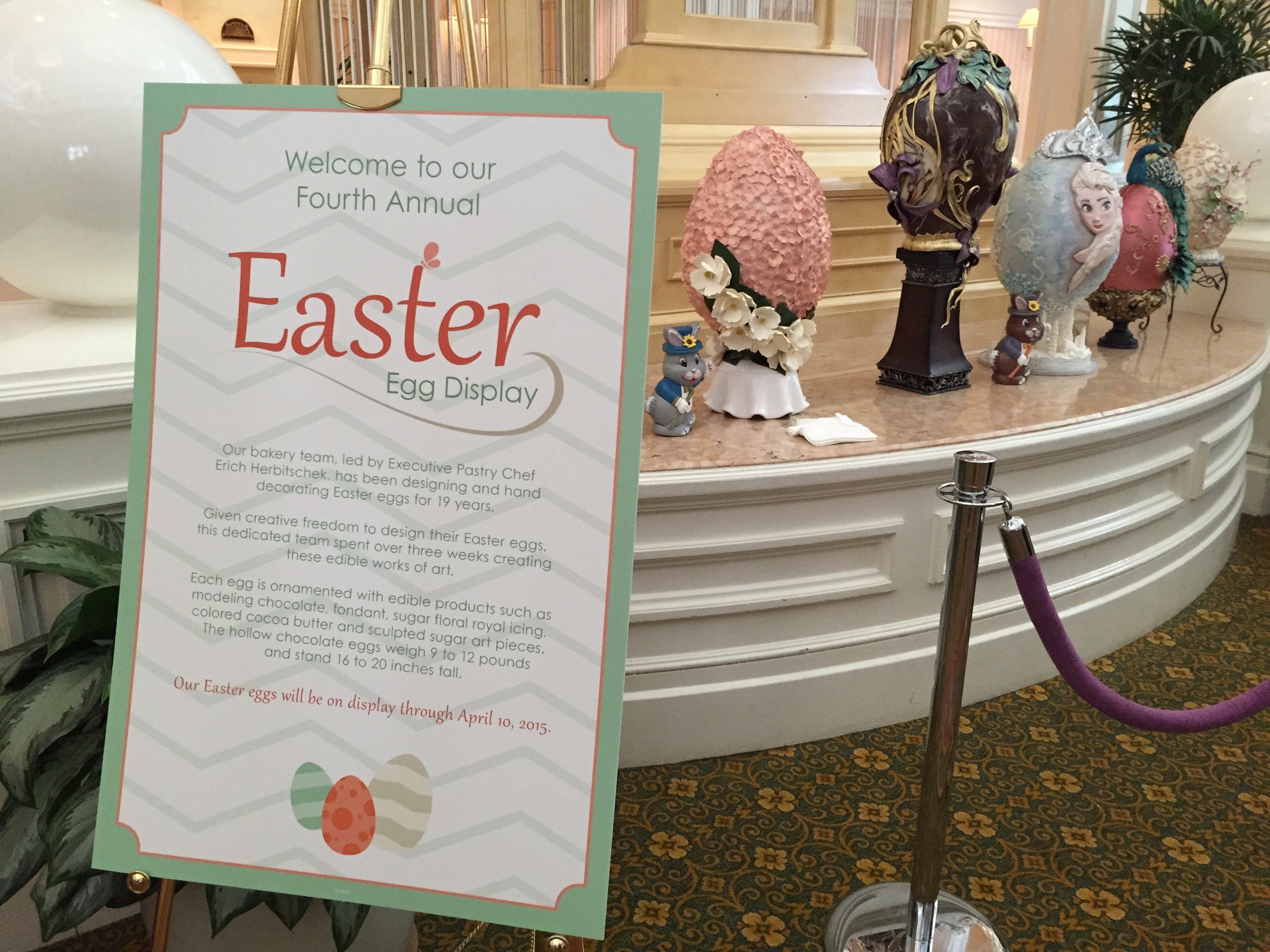 For the past 3 years, as the sign says, the Grand Floridian has been putting on a display of some of the most amazing chocolate eggs ever created...and this year is no different!