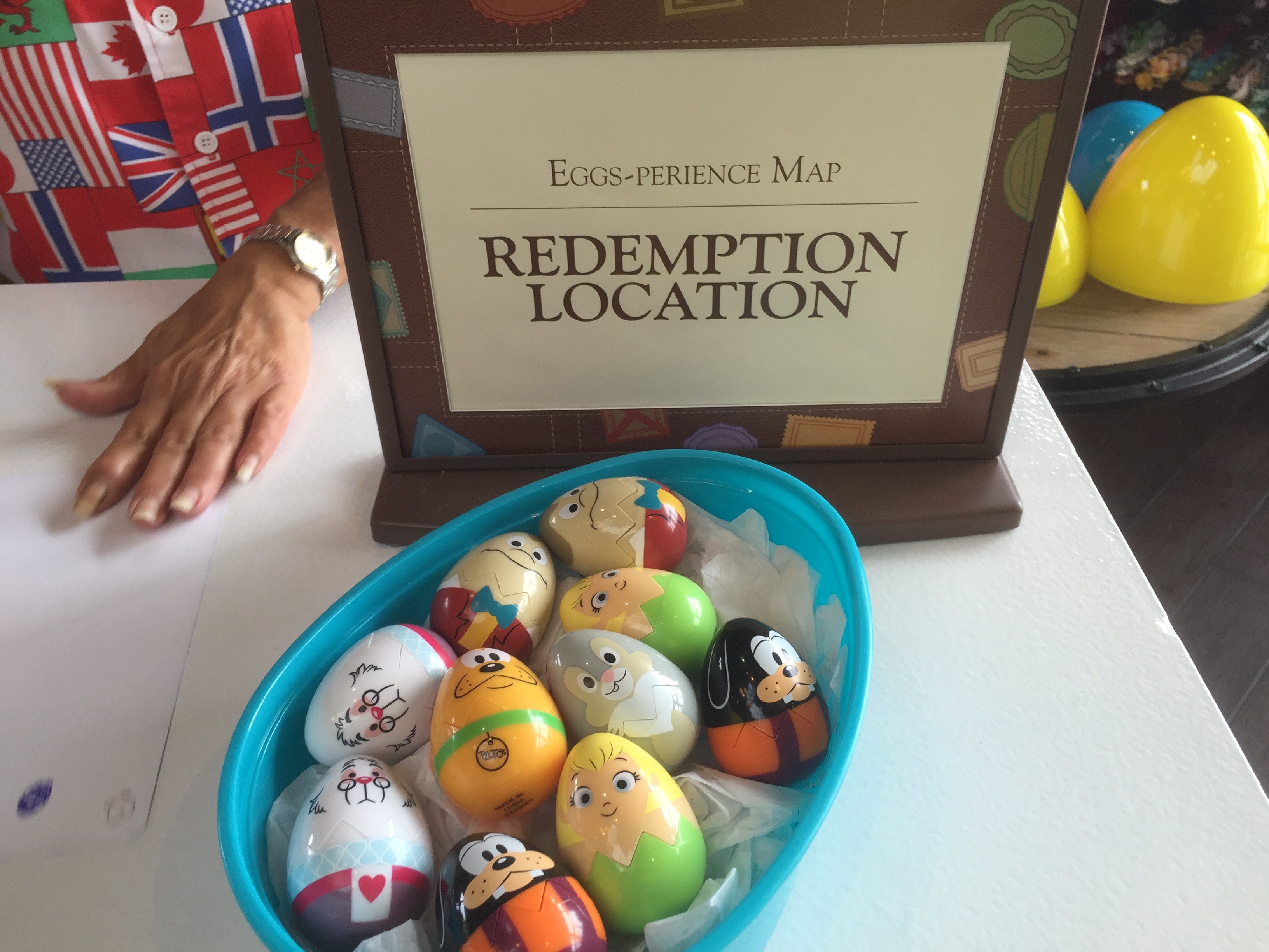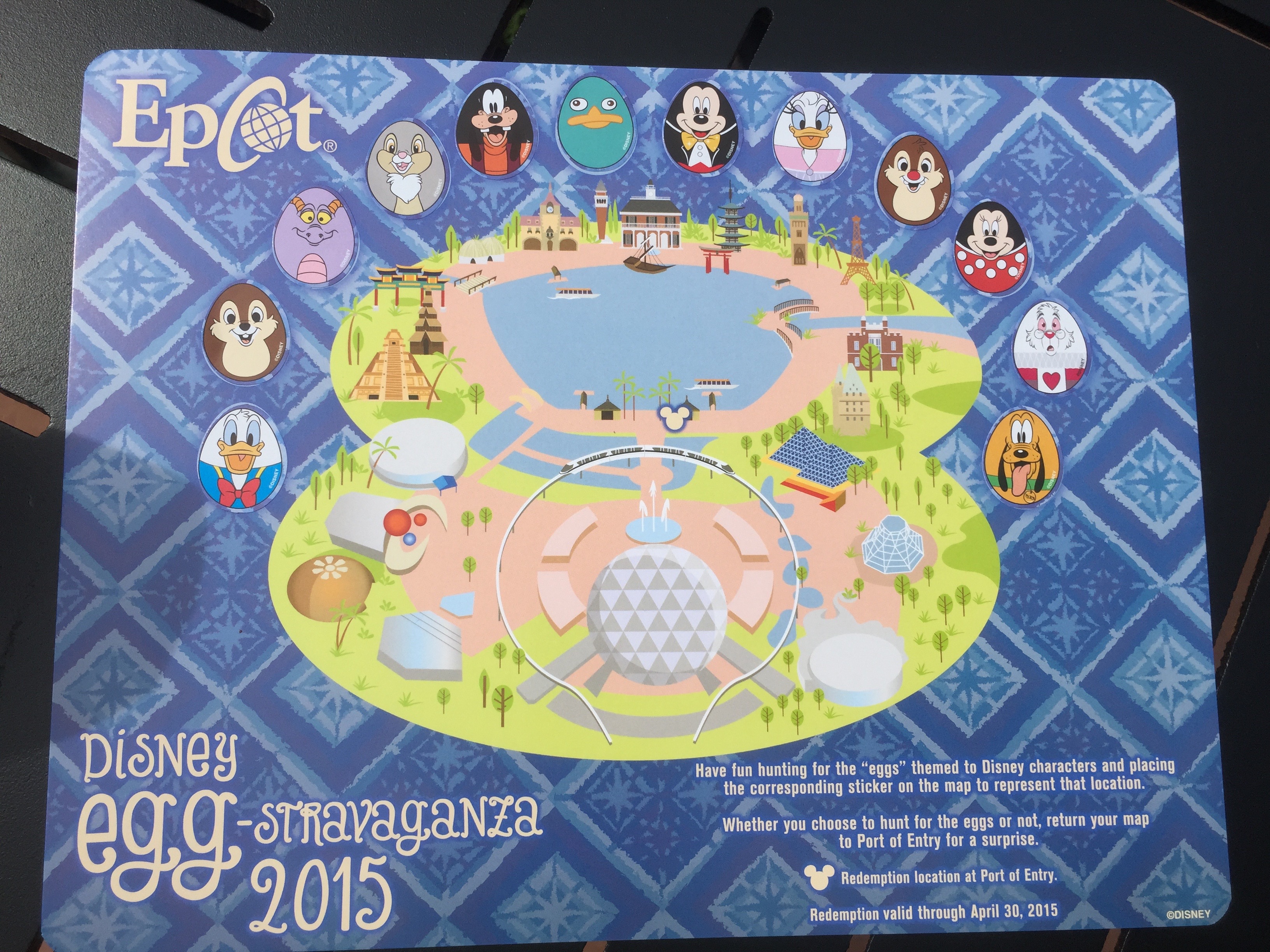 Yes it is that time again...Epcot Egg Hunt! For just over $5.00 you purchase a map and get a chance to go and hunt the eggs all around the World Showcase. Now if you want to do the hunt or simply take your map to the Port of Entry shop and redeem it is up to you, either way you get to keep your map and stickers and pick one of 6 eggs to keep.