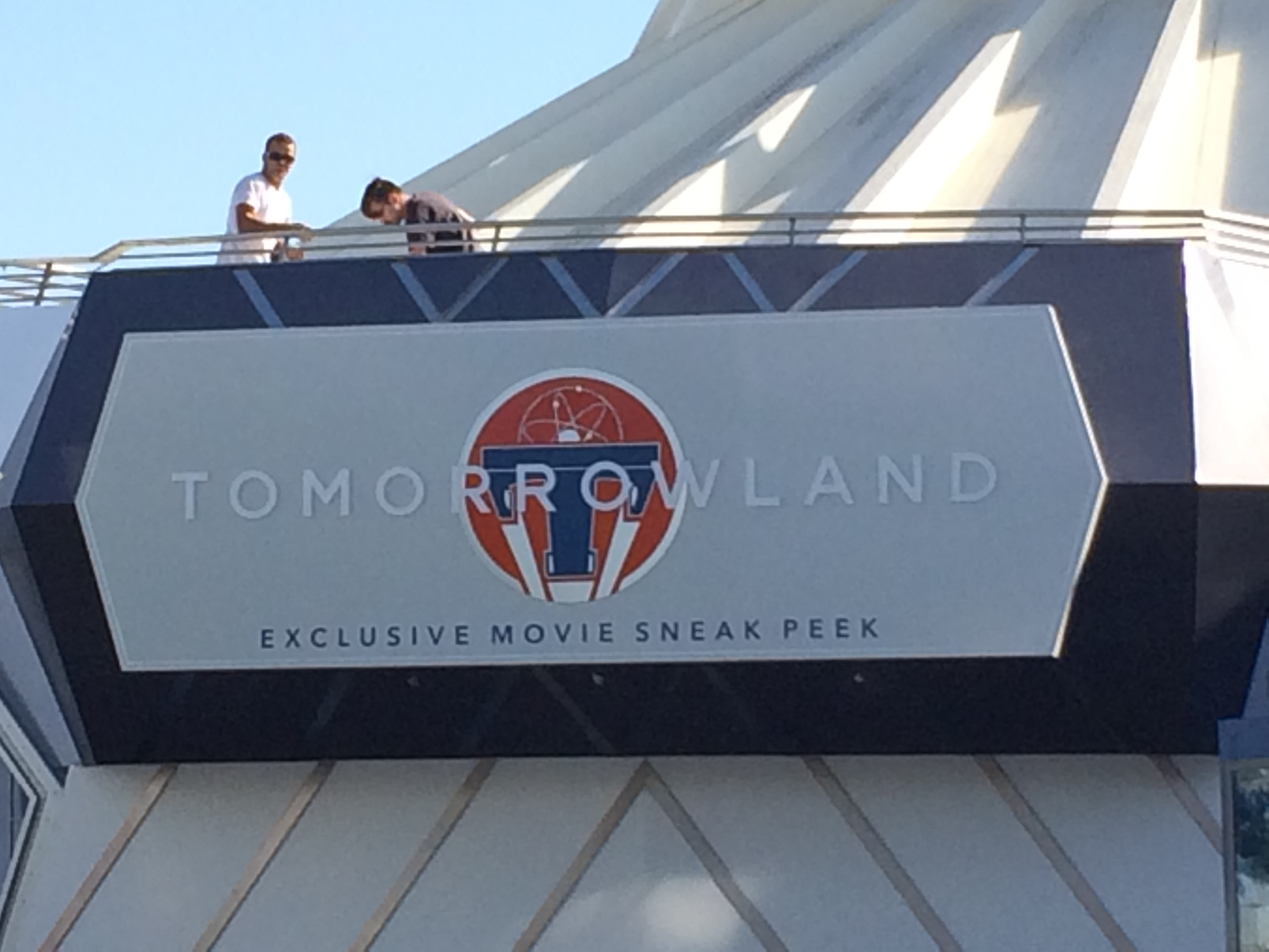 The holding pen has had some Tomorrowland touches added to it, with signage from the 1964-65 World's Fair added to the walls. It was a nice touch and something fun to look at while you waited. A pleasant voice would come over the PA every few minutes to tell us how many minutes until we reach the future, and then we were ushered through the doors that were adorned with the Tomorrowland logo and into the theater.