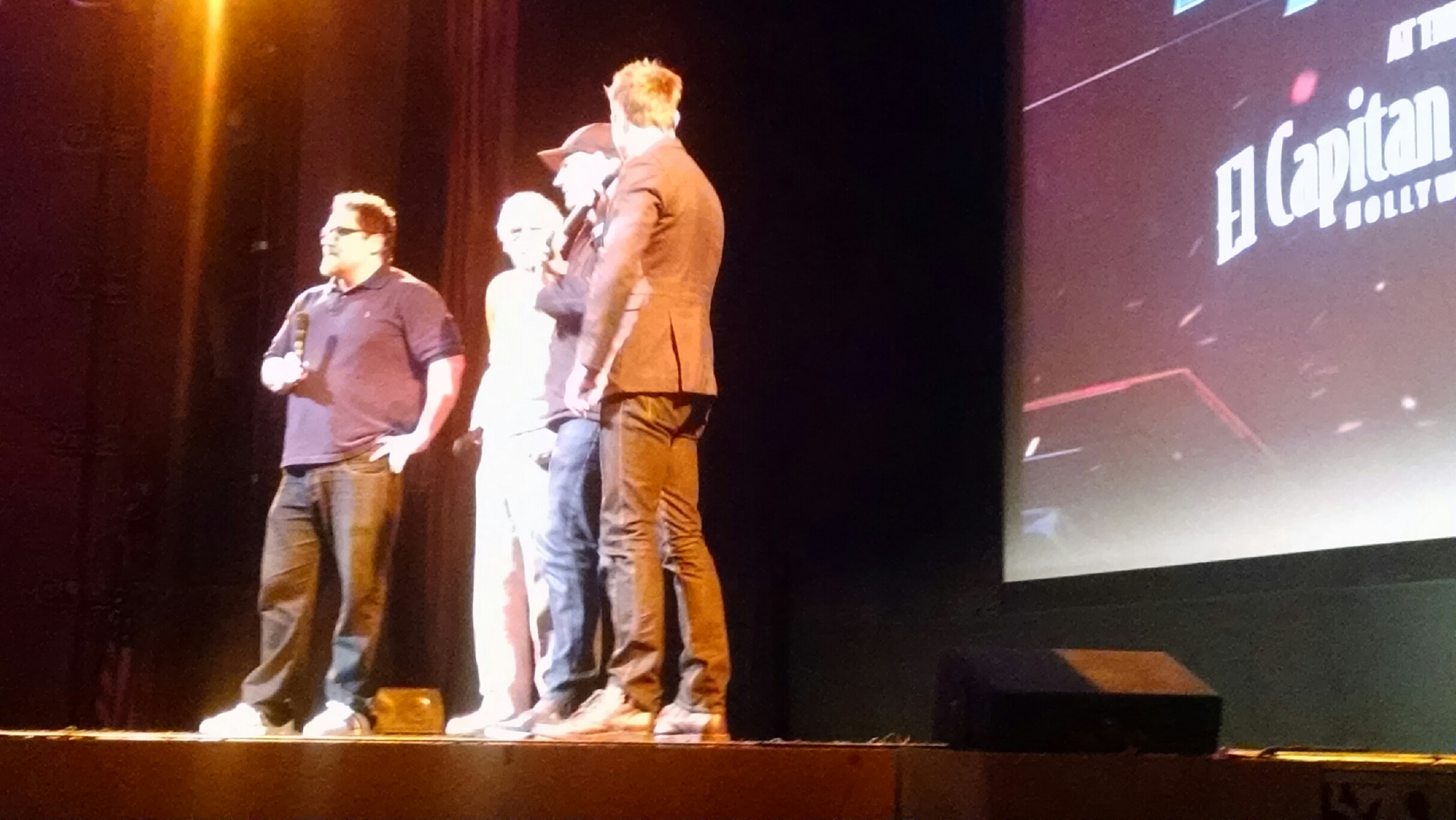 After an hour of waiting in a line with 400 people, the night started with a bang. After everyone got a complimentary large popcorn (in an exclusive Avengers bucket) and a large soda, everyone got seated at 6 for the costume contest. Hardcore Marvel fans managed to come dressed as everyone from the six members of The Avengers, to characters like Daredevil, Agent Phil Coulson and Pepper Potts! My personal favorite was a girl who came dressed as a combination of Star Lord/The Rocketeer, the later of which was especially appropriate given that The Rocketeer was the first movie to have its premiere at the El Capitan since Disney’s purchase and renovation of the place in 1991. Ultimately, the crowd’s enthusiastic cheer chose the winners and of course Ultron won the night!