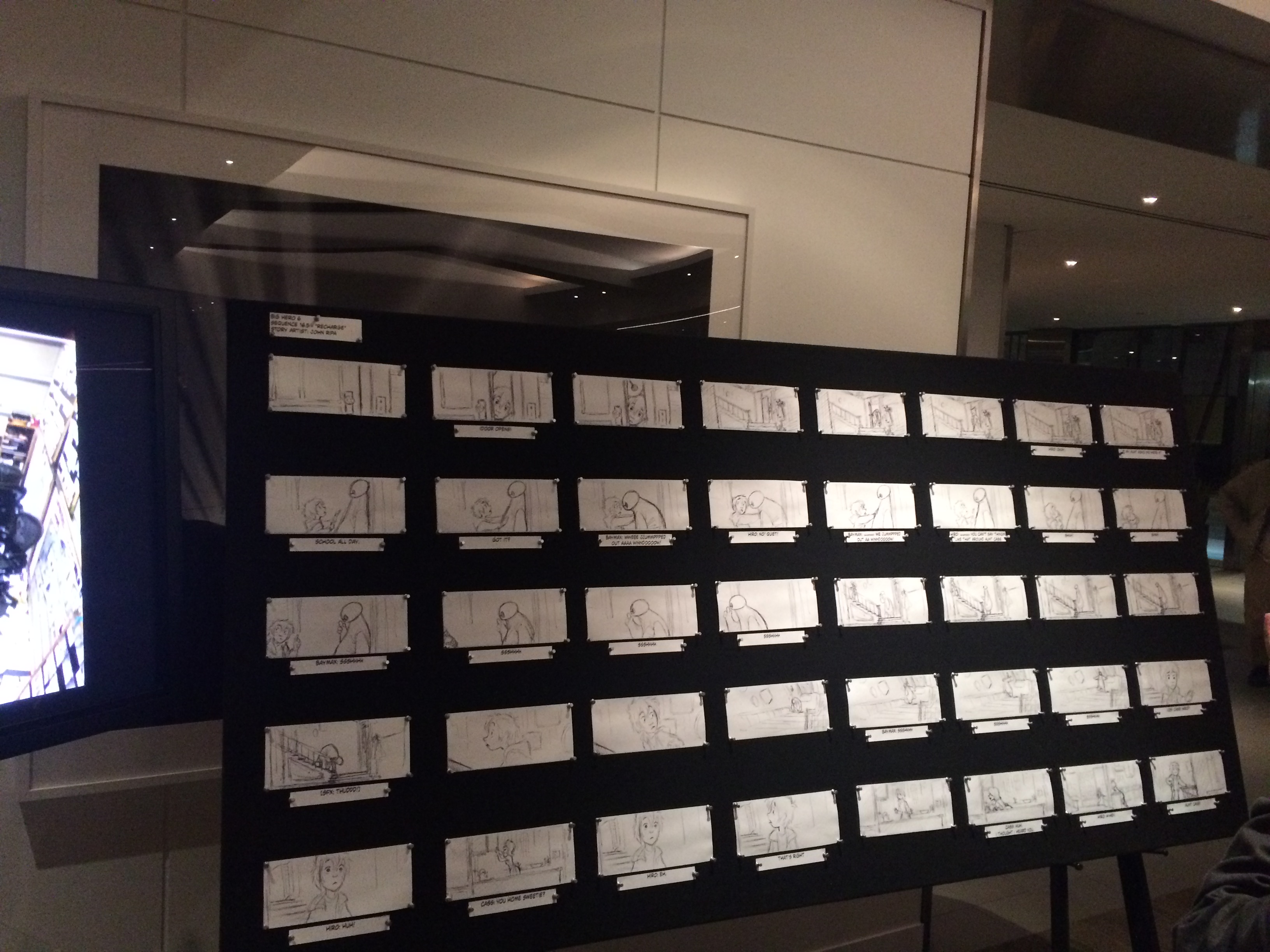 Following the discussion, storyboard displays, along with the special vinyl-covered soft robotics arm, and more were on display in the lobby. It was great to see this, and really learned a lot about the filmmaking process.