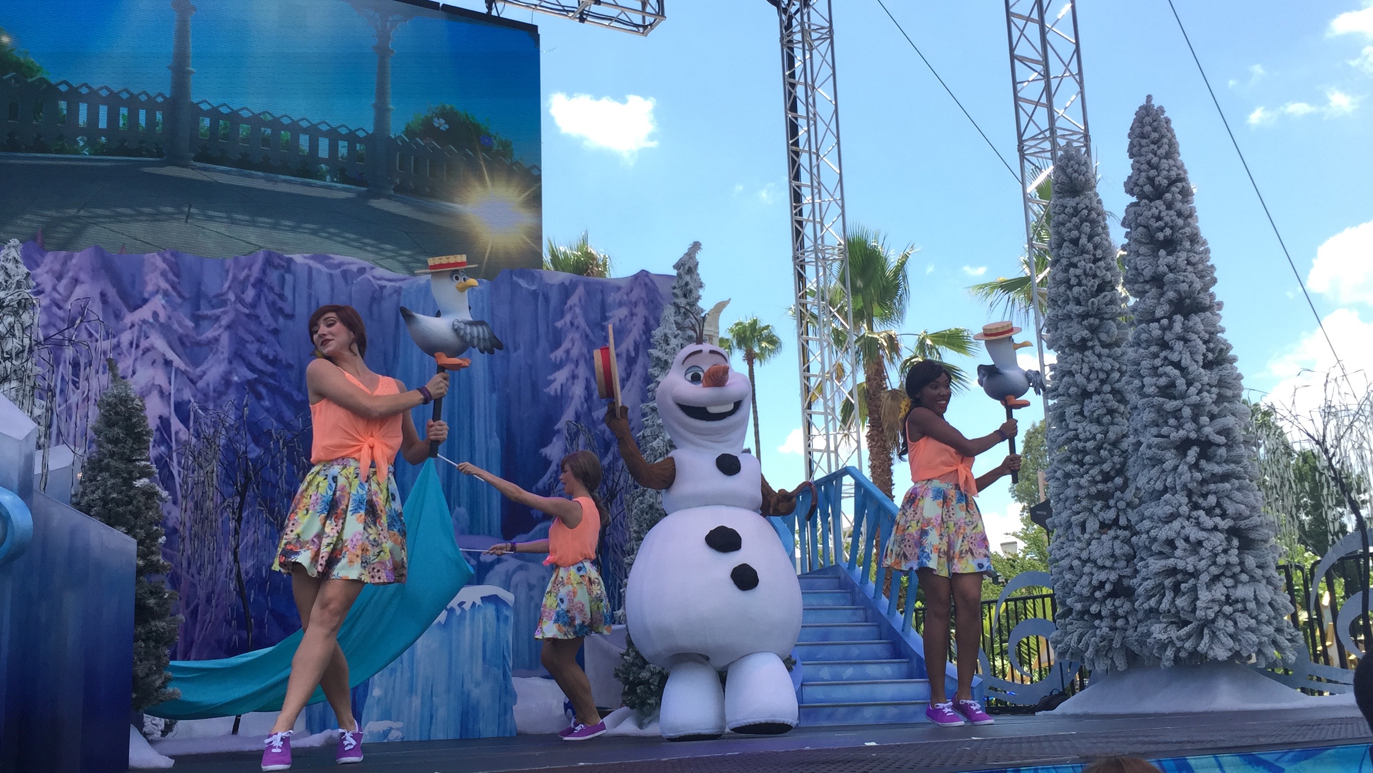 Also showing multiple times throughout the day on the Center Stage is Olaf's Summer Cool Down. This is a expanded version of last years show but instead of Olaf just being on the screen he comes out and actually sings and dances! But as you will be able to tell from this video some of the equipment is a little loud while getting ready for the cool down moment and always be on the look out for flying beachballs!!!