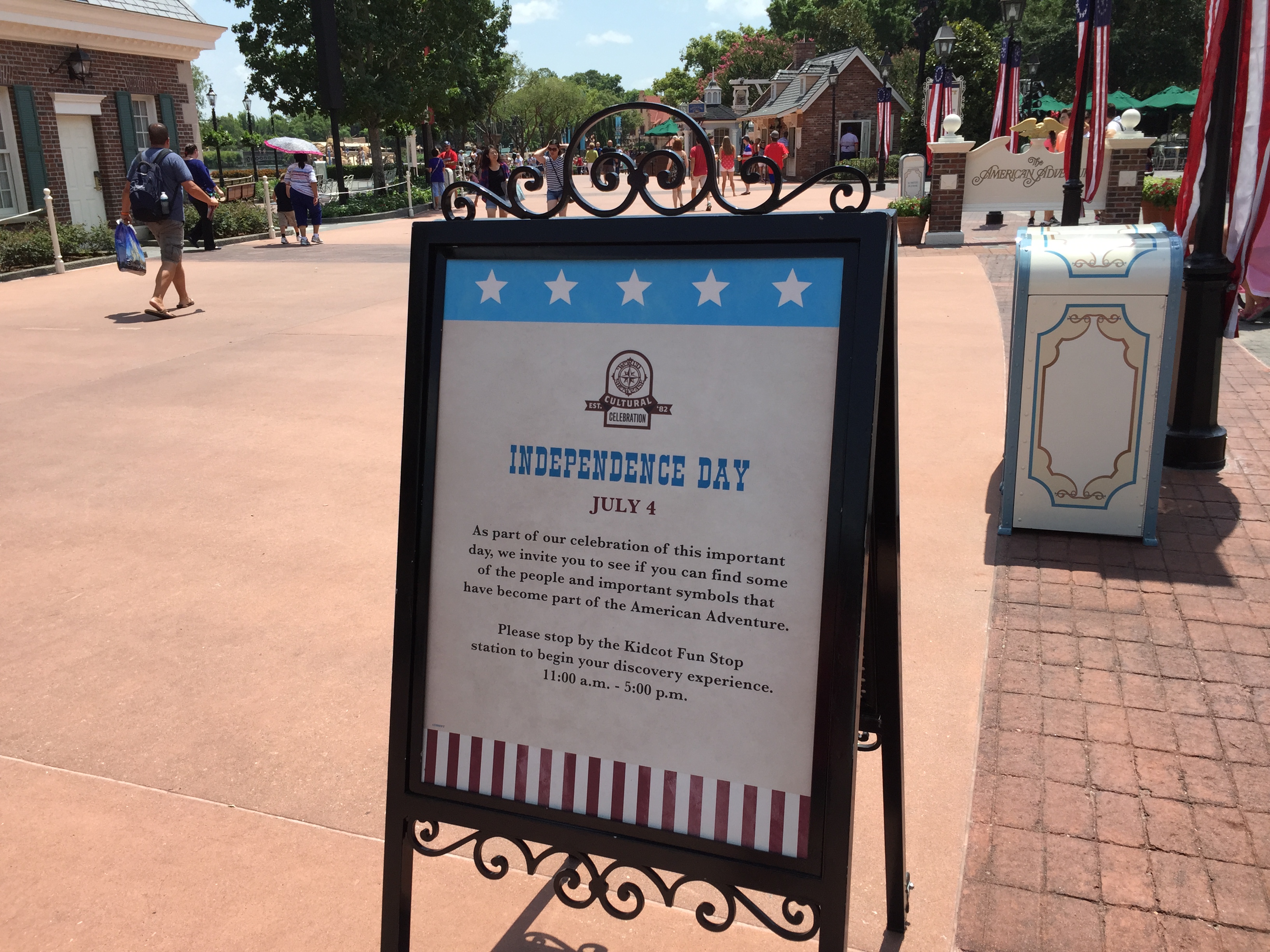 Each day since 1982, Epcot has been celebrating our country with the American Adventure. But July 4th is always a special day at Epcot with small events like a American History scavenger hunt and patriotic characters.
