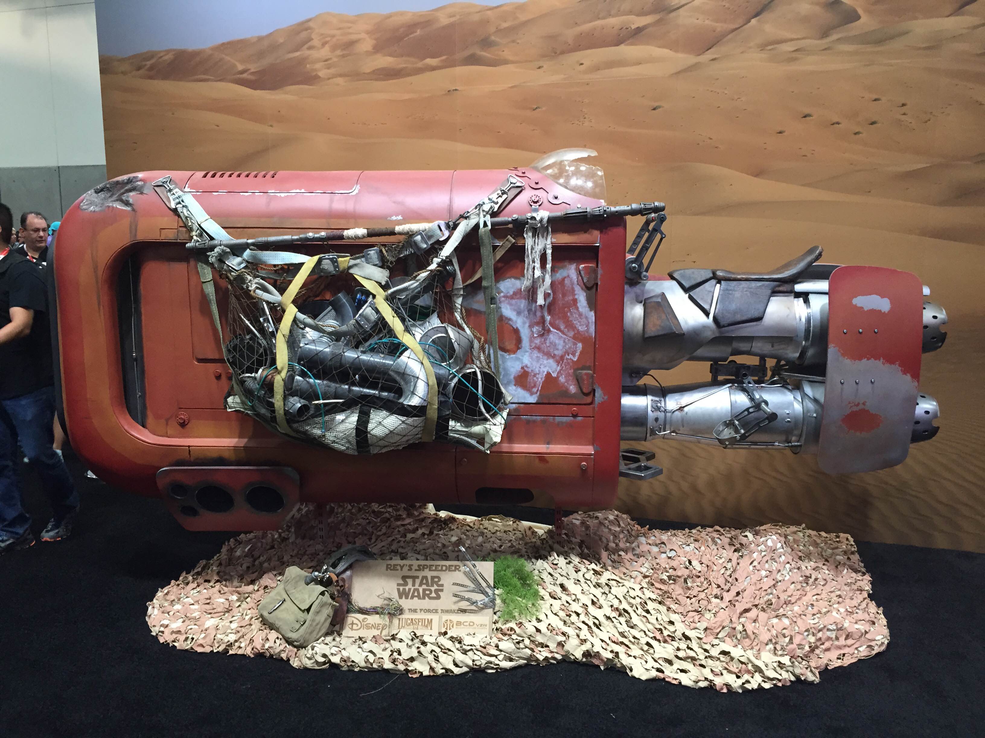 Star Wars: Lucasfilm has a huge presence with various licensees ranging from Her Universe to Petco showcasing their wares. The highlight of the booth is Rey's speeder from the upcoming The Force Awakens.