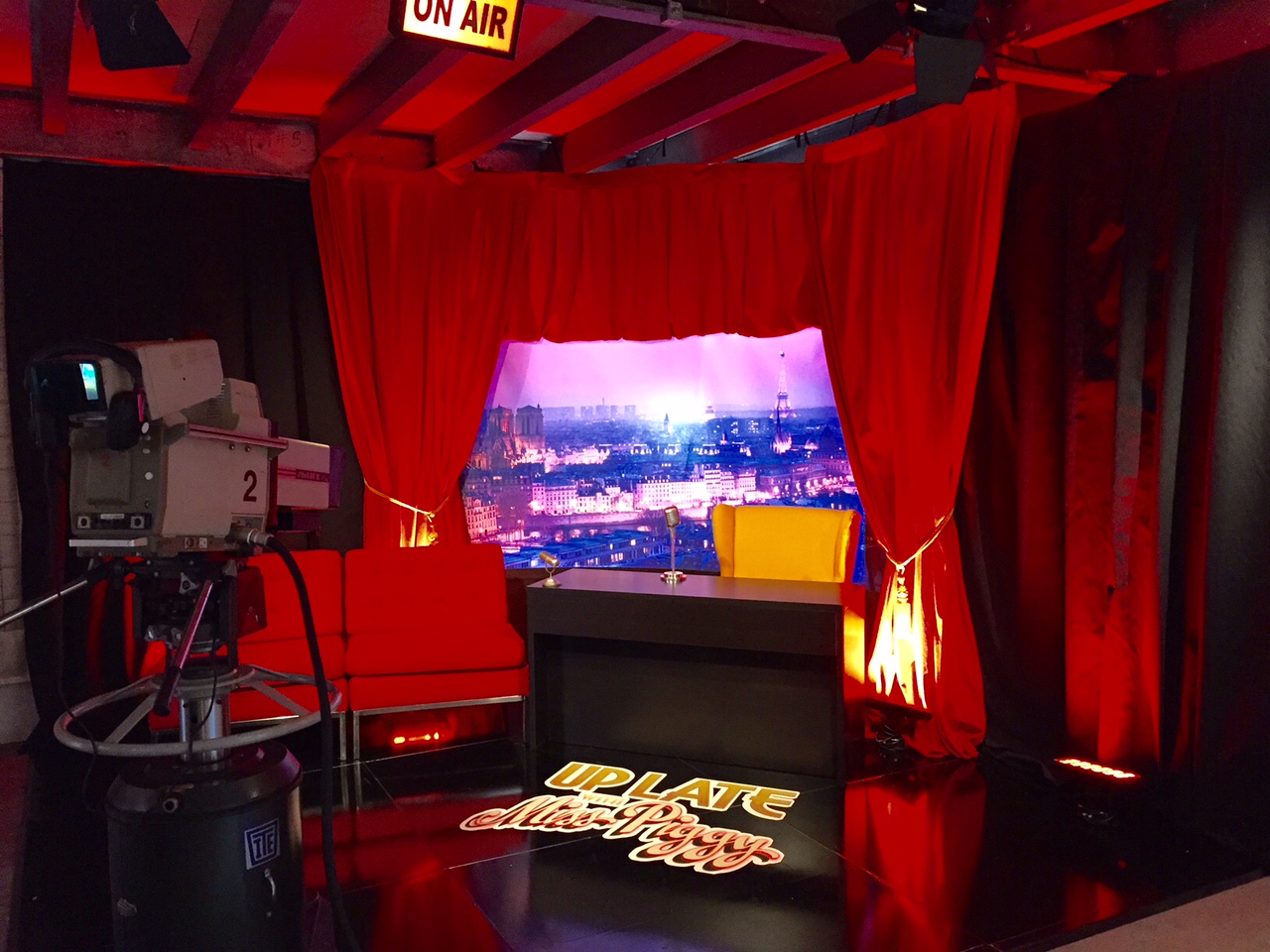 ABC: The ABC booth is themed to "Soundstage 2." Small groups are escorted in at a time where they show a three minute clip of the new Muppets show coming to ABC this fall. They also showed the set of "Up Late with Miss Piggy" which is the show within a show on The Muppets. One at a time, attendees are taken to a photo booth where four pictures are taken. Through some ABC magic, a Muppet or the Evil Queen from Once Upon a Time is added to your picture. You can then Tweet the pictures to enter to win a ticket to either The Muppets or Once Upon a Time cast signing happening later in the convention. Each guest is given a button as they exit.