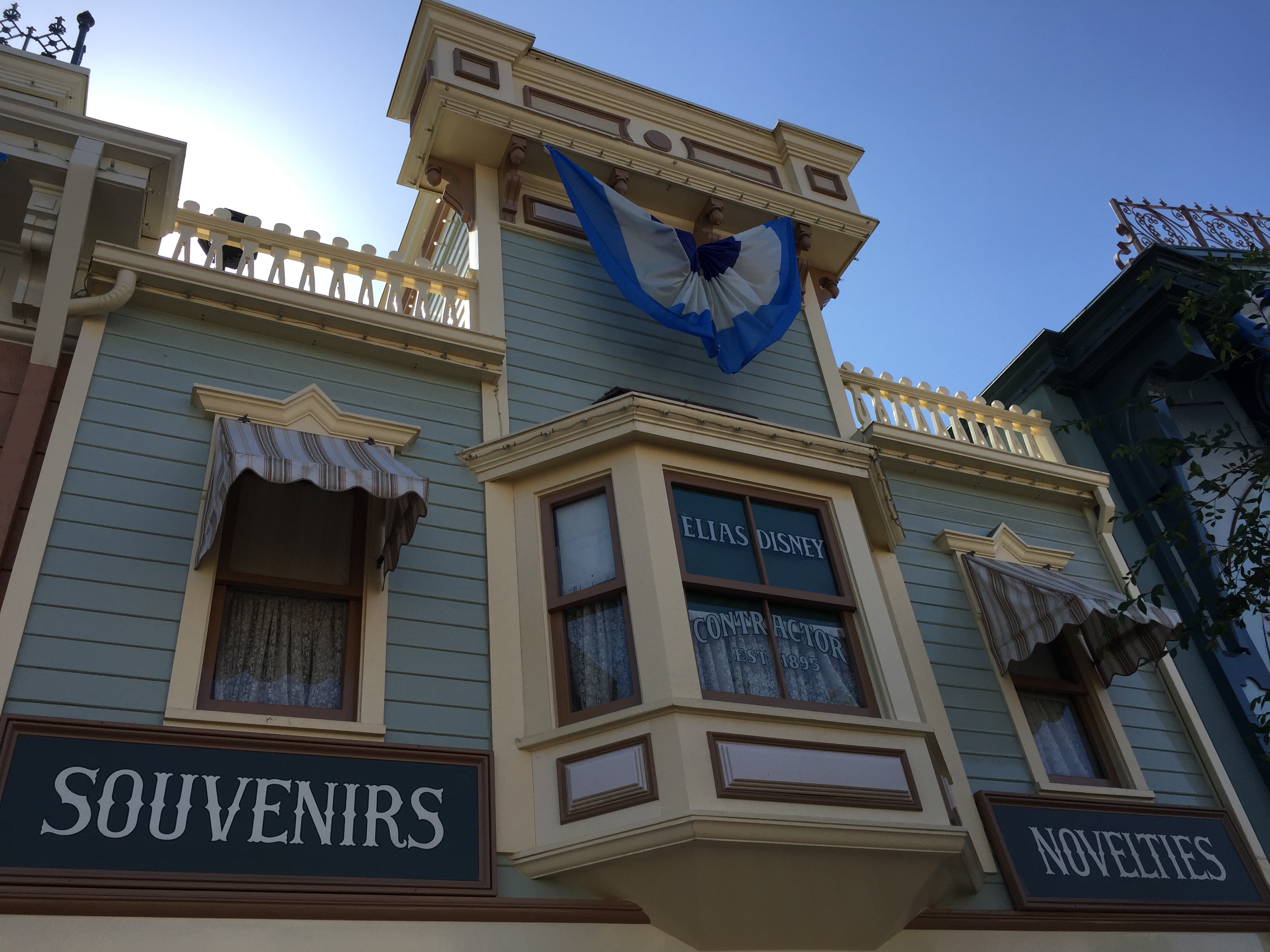 - Windows of Main St. - Most guests just walk down Main St. heading toward their favorite attraction or to get a Fastpass for the Frozen show at the Royal Theater, but if you take a moment you will see the opening credits of Disneyland. There is a long tradition of putting a window and now a door to celebrate some of the people who made Disneyland what it is today, but it all started with Elias Disney's contractor window that Walt himself had put on Main St.