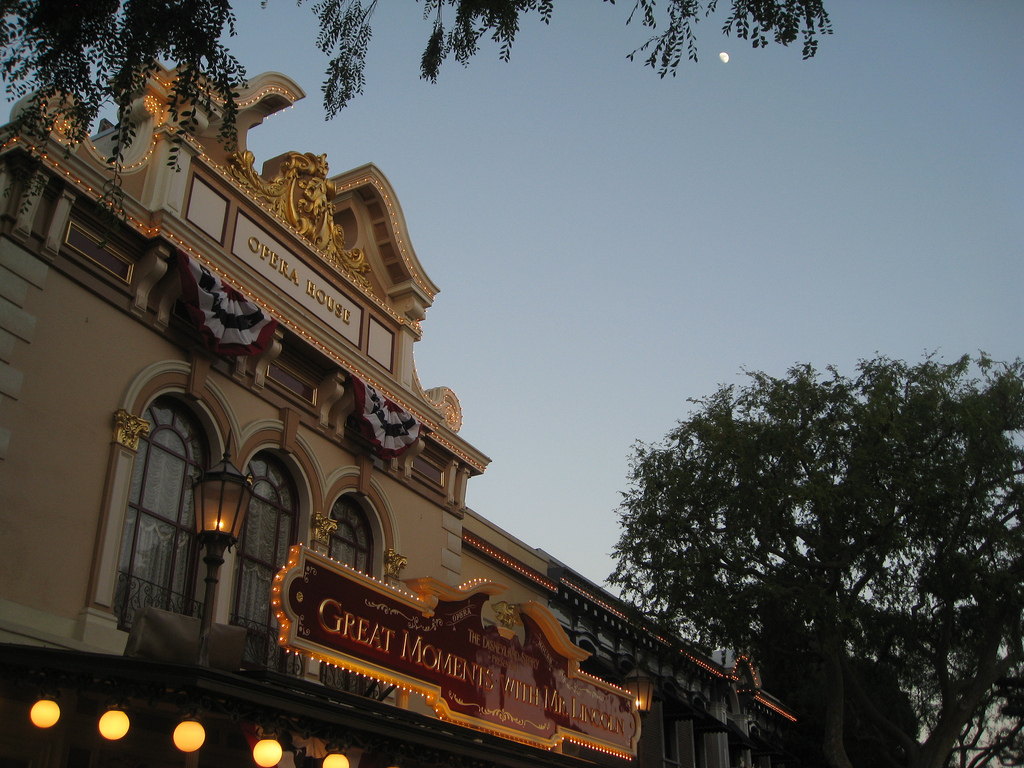 - The Main Street Opera House - The current home of Great Moments with Mr. Lincoln and The Disneyland Story, this building was the first building built on site. Originally a wood mill that Disneyland grew out of, this building through the early years of the park served as a preview center of sorts for the 1961 Disney film 'Babes in Toyland' before becoming the "Official Home of the Mickey Mouse Club" for a few years before Mr. Lincoln moved in.