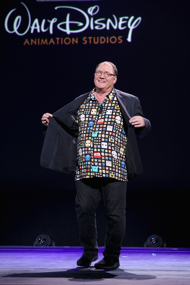 On Friday, August 14th, 7,500 Disney fans crammed into Hall D23 at the fourth D23 Expo to get a first glimpse at the upcoming slate of Disney and Pixar animated films. John Lassetter, Chief Creative Officer of both studios, hosted the three hour presentation and kicked things off by launching a few of his exclusive D23 Expo Hawaiian shirt into the crowds. The shirt, by the way, was nearly impossible to get at the Expo's Disney Store and came at a price of $99.