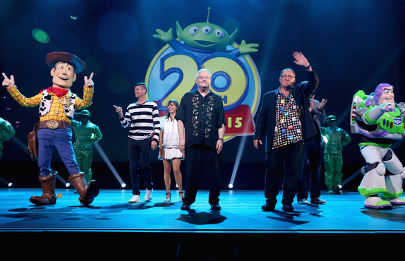 As the grand finale, John Lasseter talked about Toy Story 4 and welcomed Josh Cooley back to the stage as his co-director. Lasseter shared that the initial treatment was done by Andrew Stanton, but the final script is being written by Rashida Jones and Will McCormick, who joined him on stage. Toy Story 4 is a love story between Woody and Bo Peep, whom you may remember was absent in Toy Story 3. Buzz and Woody leave Bonnie and the gang to go on a mission to bring back Bo Peep so she and Woody can be together. To close the show, Randy Newman performed "You've Got a Friend in Me." As the song finished, ropes dropped from the rafters and Green Army Men dropped into the crowd as confetti bursted from the ceilings and more shirts were shot into the crowds.