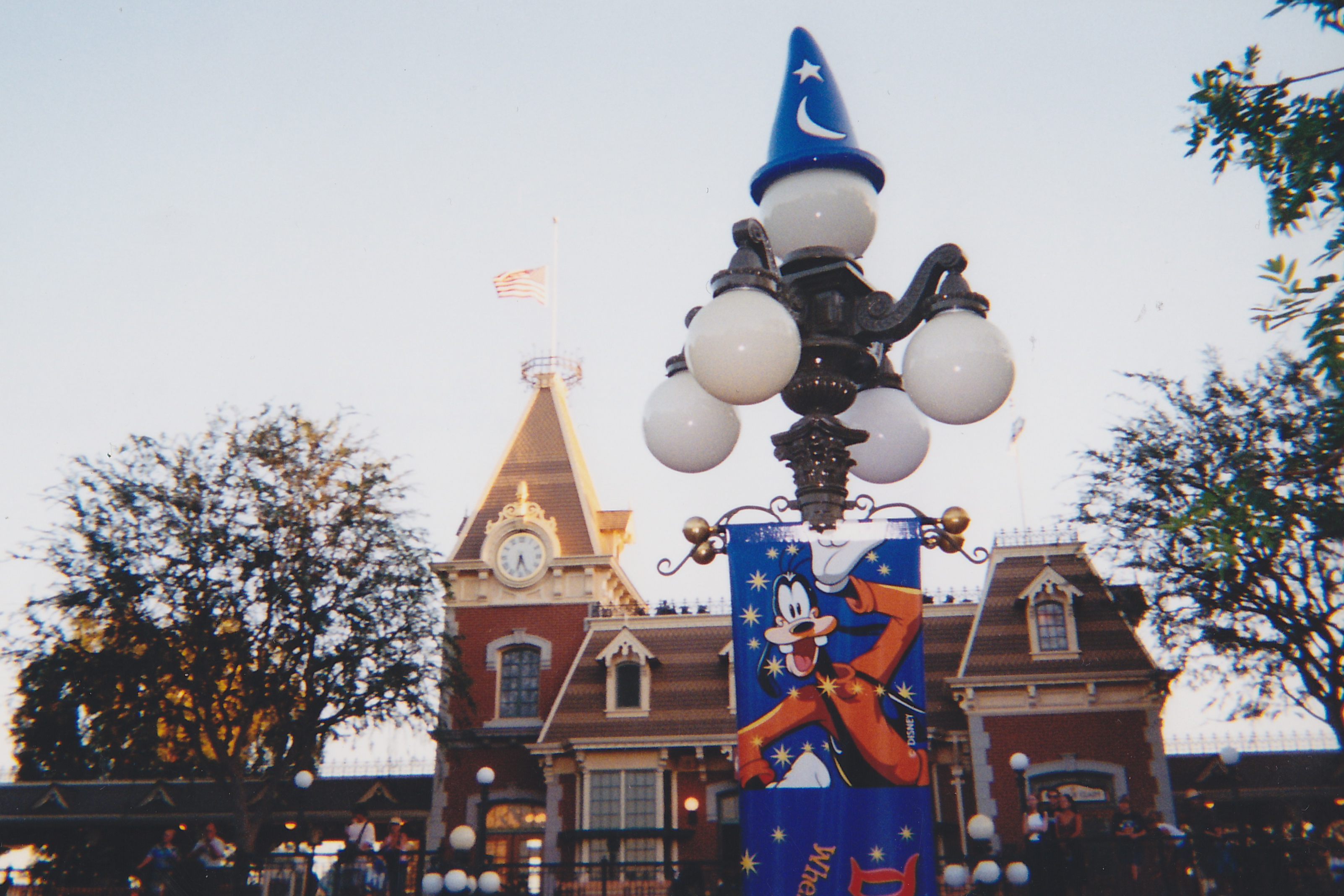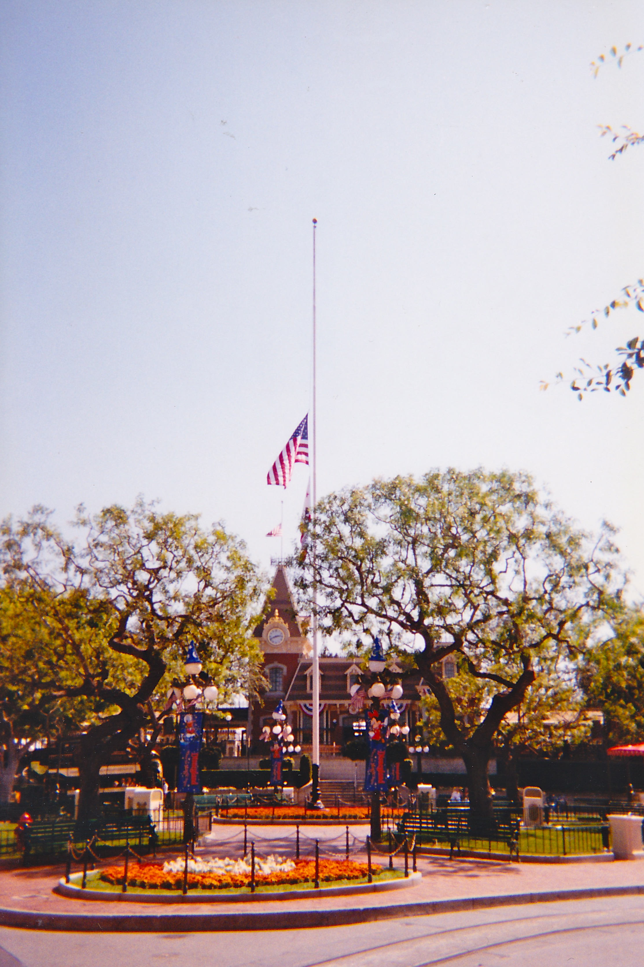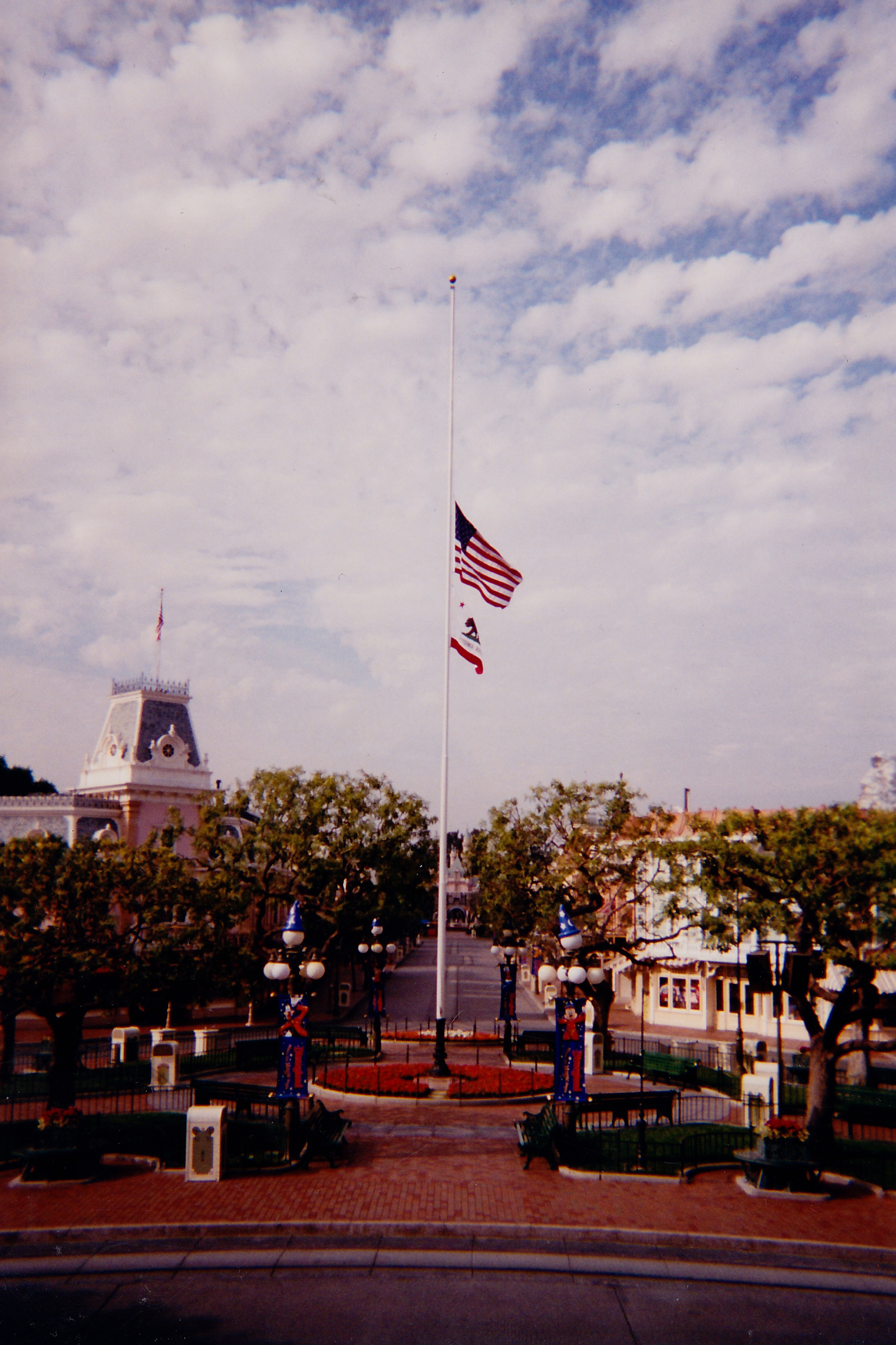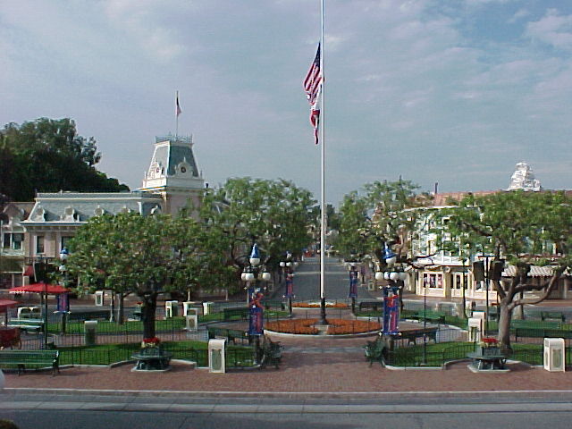 Picking up the camera, Ginger headed over to Disneyland. Her first stop was Town Square, to see if the flag had been moved to half-staff. She was pleased to note that this had, indeed, been done.