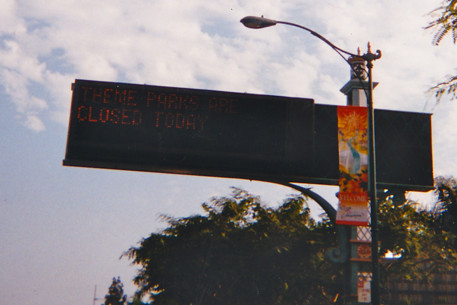 Driving home through the unusually light traffic, Ginger noted the lighted street signs, today carrying the terse message, “Theme Parks are closed today.”