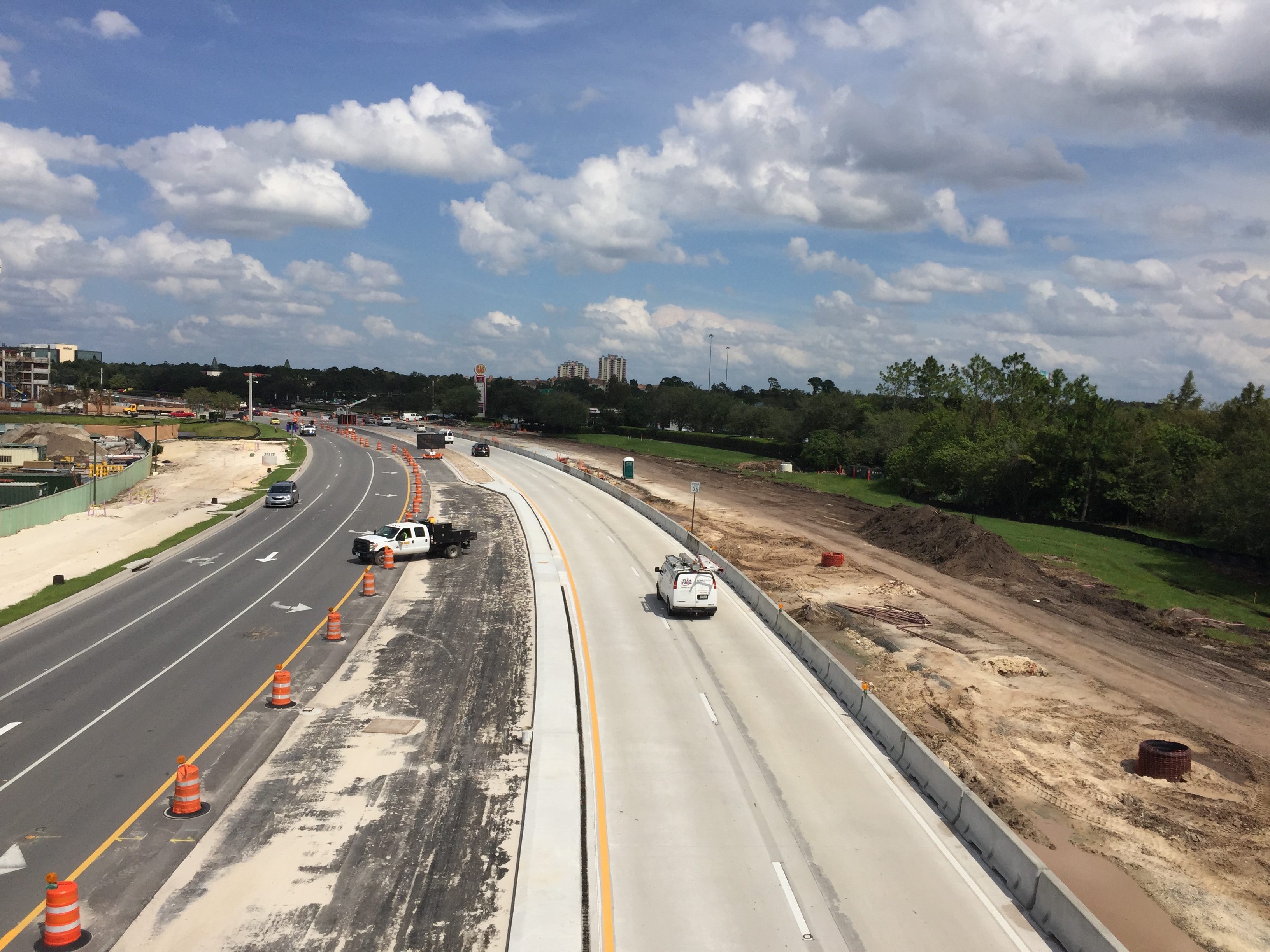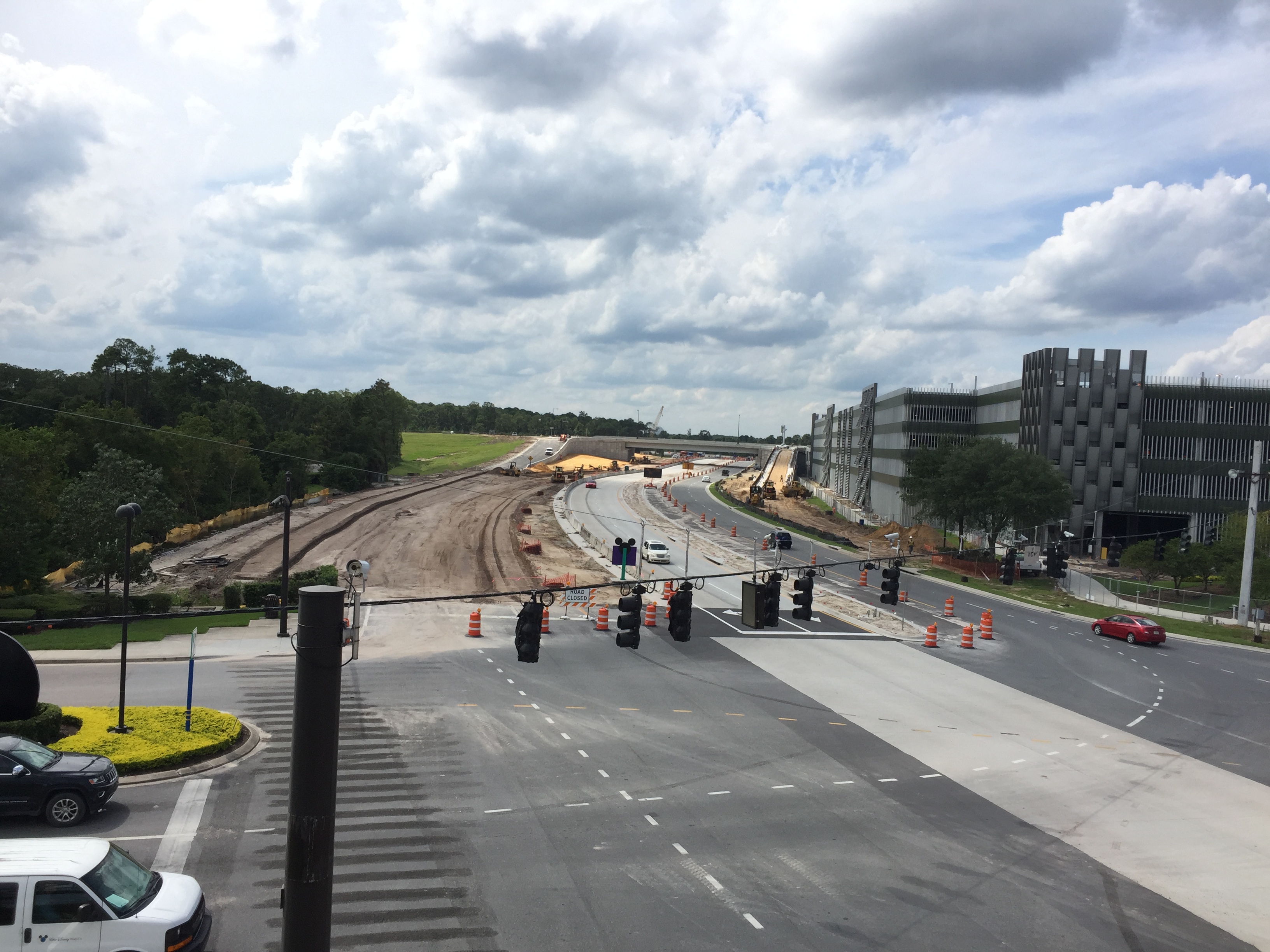 The bridge, while serving the purpose of helping alleviate the ever-growing foot traffic across a very busy road, also gives some great views of the construction going on not only on Buena Vista Drive but also the Town Center area of Disney Springs.