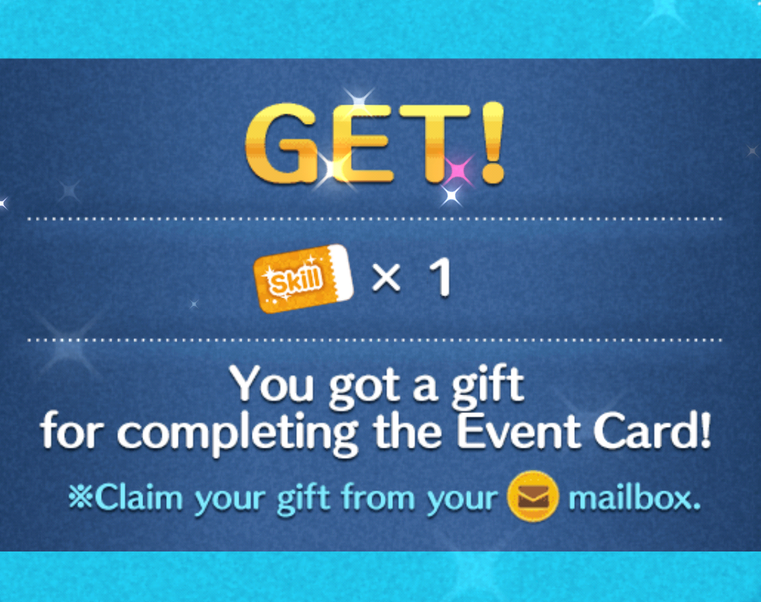 The prize for filling up the second card sounds marvelous. “Skill Up Ticket.” YAAAAS! In premise, you can use it to skill up any Tsum Tsum of your choosing. That means you don’t have to wait to randomly get a Tsum Tsum in a box to raise it’s level. This almost seems to good to be true.