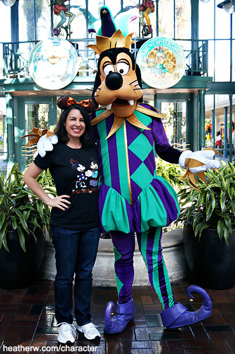 I had seen pictures of Jester Mickey and Goofy meeting at Port Orleans French Quarter the year before, and knew I had to meet them. Since I was staying at Port Orleans Riverside this trip, it was an easy walk over. They were setting up other Halloween events, but no one knew exactly where the characters would meet. I just sat around the lobby, and thankfully that's where they met, in front of the fountain. Goofy came out first, and I waited around for half an hour for Mickey.