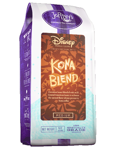The most impressive of its coffee and teas is the Disney Parks & Resorts Specialty Coffee Collection. Currently there are 20 different coffees in this product line. Prices range from $12.95 to $14.95, however, there is one coffee — the Kona Blend — that prices at $19.99. All prices are for 16 oz. package of ground coffee, whole bean, or French Press.