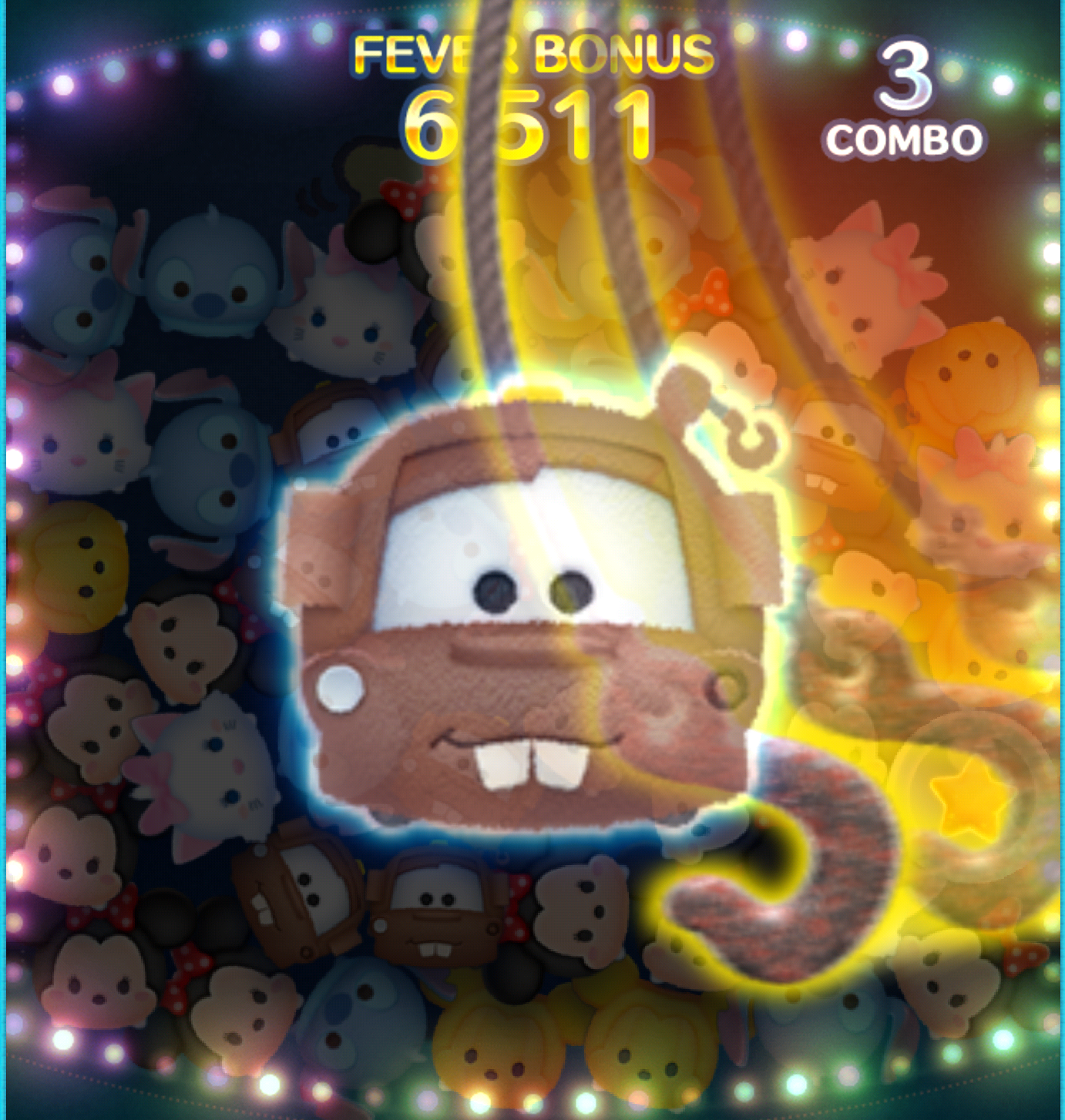 Mater has an even better skill, which clears tons of non-Mater Tsum Tsums from the screen. His towing hook swings across the screen and highlights a whole bunch of Tsum Tsums all at once. When it's done, you are left with quite a few Mater's adjacent to each other so you can connect them and unlock his skill again. It's hard not to score over 1,000,000 with Mater. YEEEEE HAAAAAAWWWWWW!!!!!! ! !!!! !! !