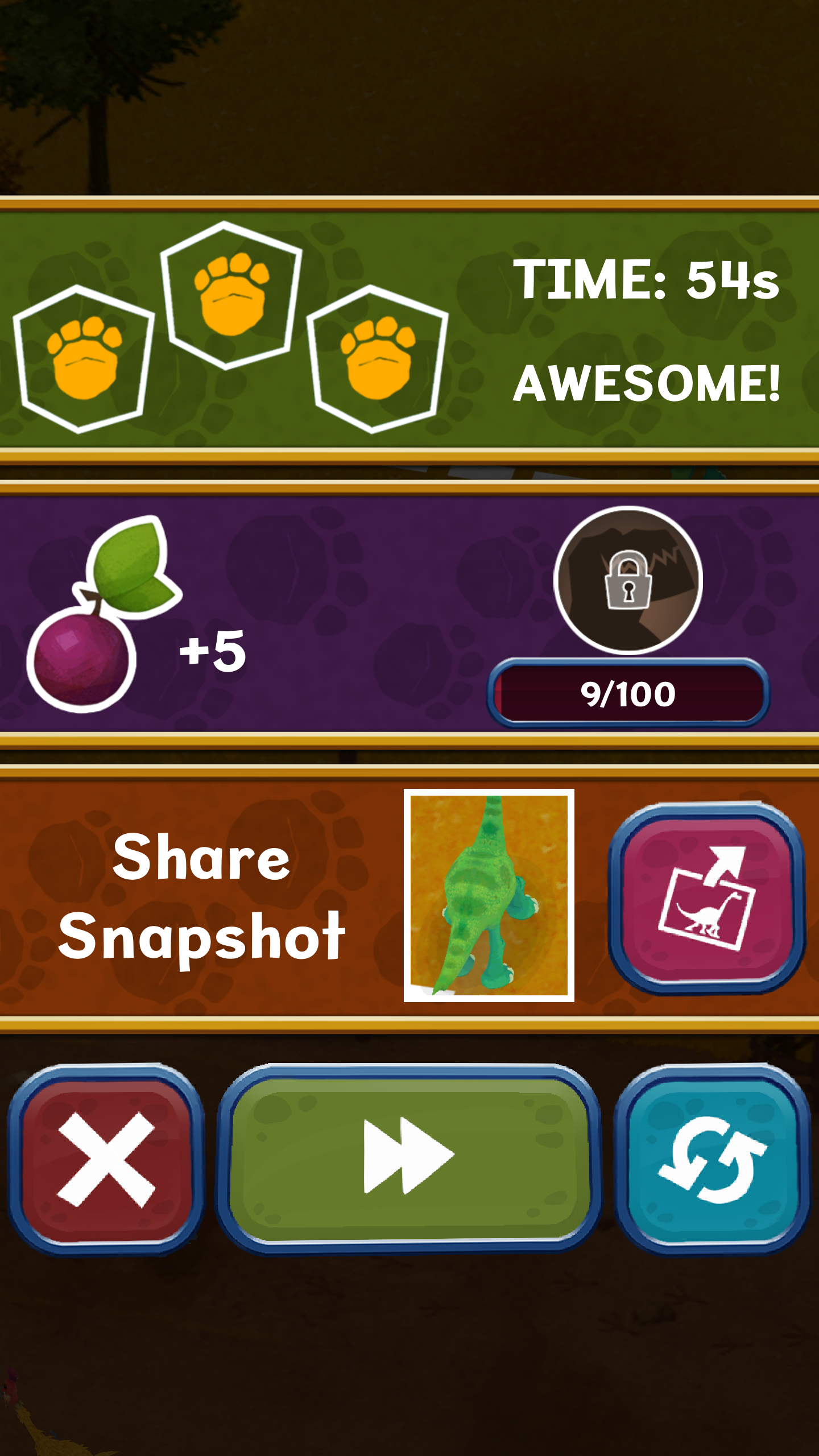 Categorized as a hopper-style game, you play as Arlo — a friendly Apatosaurs — and his little neanderthal friend, Spot. Players have the option to choose between three different types of gameplay: Journey mode, Endless mode or Berry Bonanza mode. All are fun choices! Additionally, you have the ability to connect your progress and updates to Facebook and even share snapshots from the game on your feed.