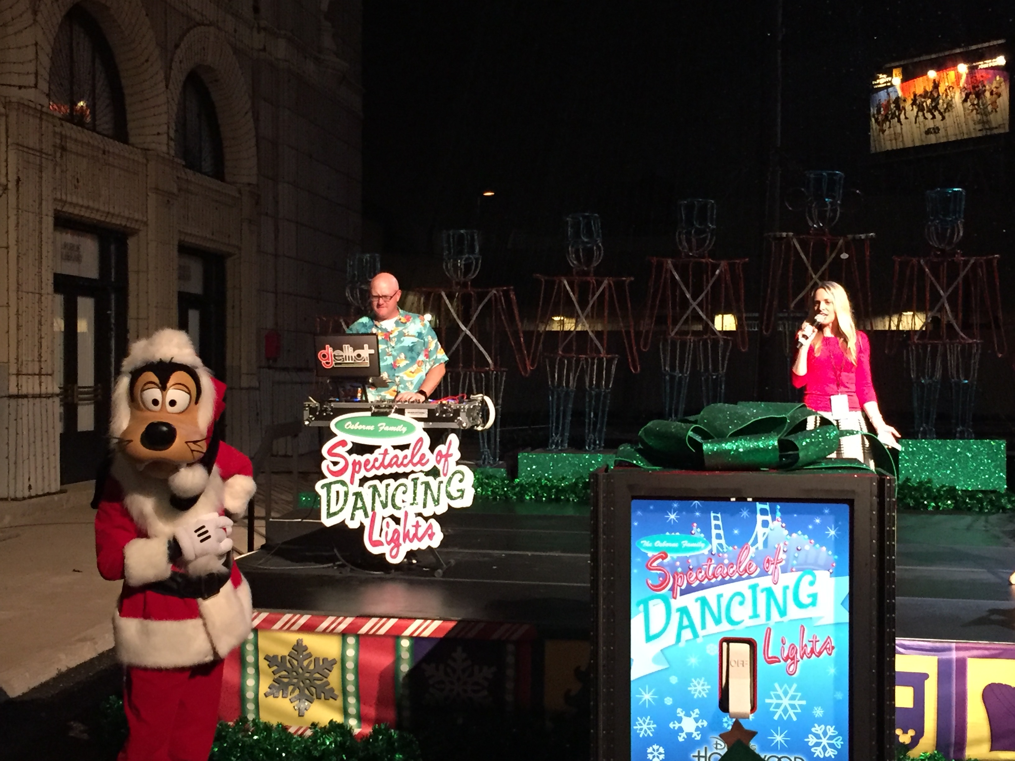 Taking place after park hours, 500 lucky readers were able to enjoy holiday treats and, of course, take in the Osborne Lights with hardly anyone around! The night started off with Jennifer Fickley-Baker, editorial content manager for the Parks Blog, giving us a run down of the event and Santa Goofy and DJ Elliot helping her turn on the lights.