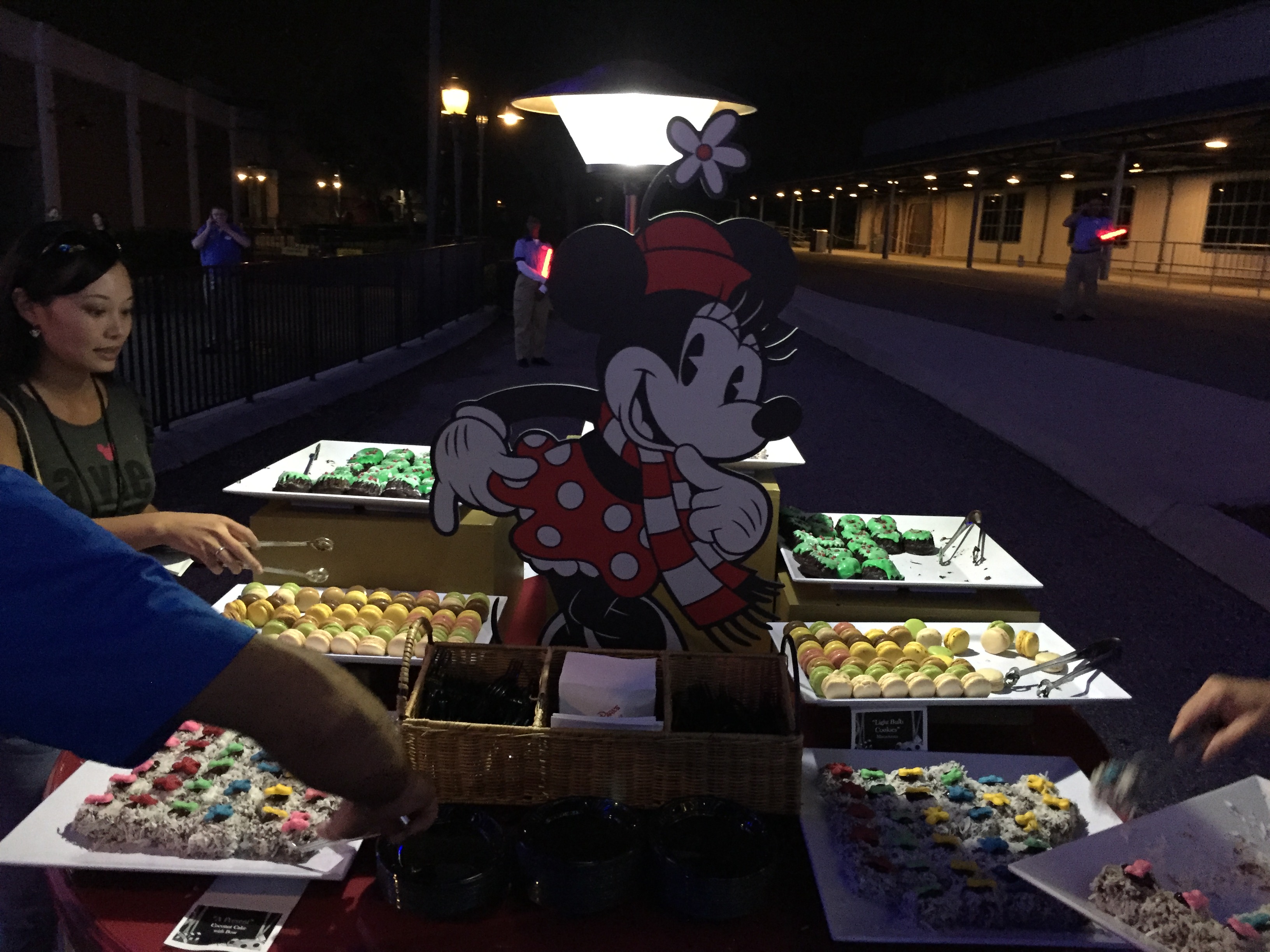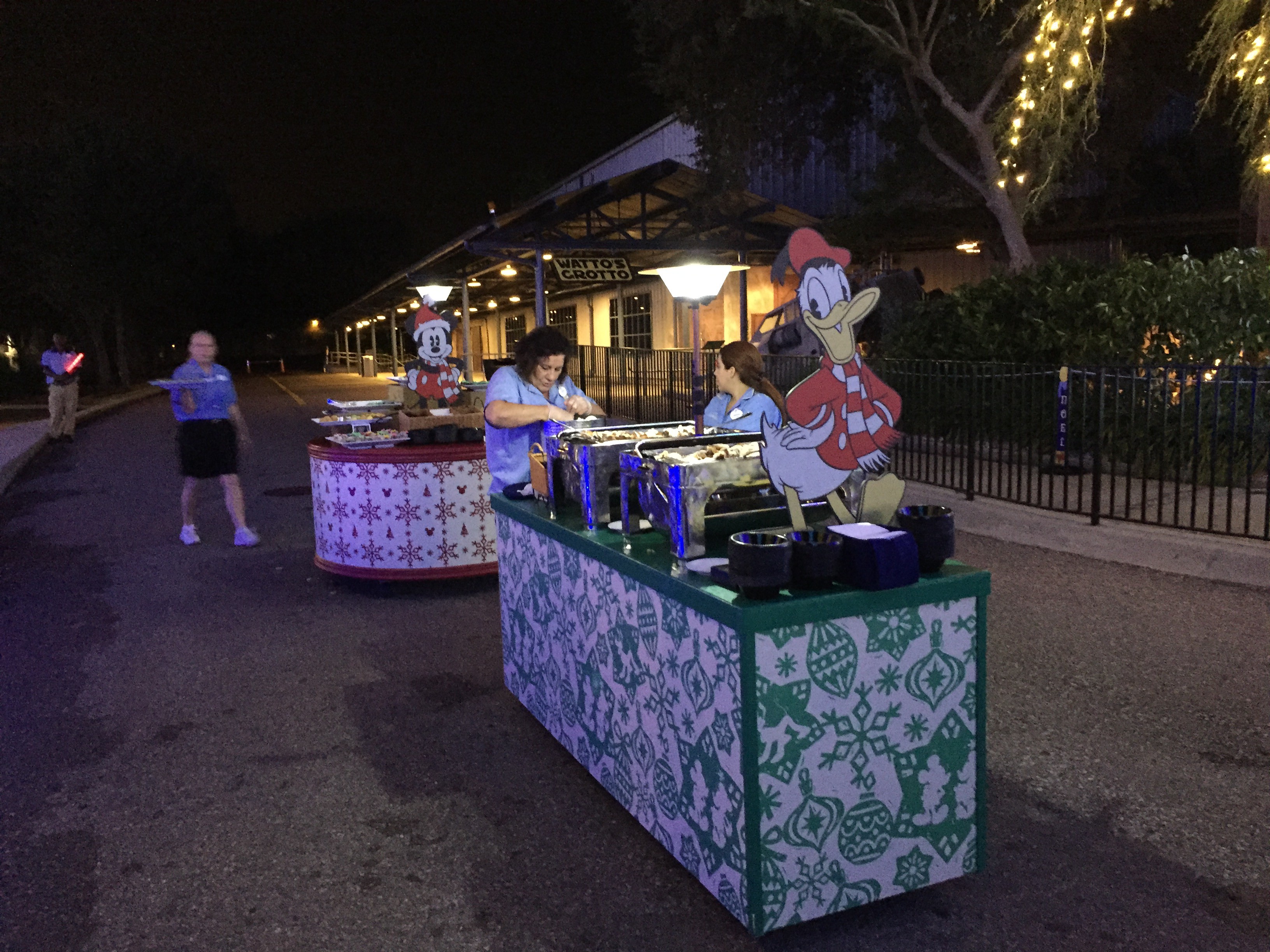 After a brief time of the dancing lights not dancing, the parks blog live stream kicked in and all the lights came alive as you can see here. Throughout the night, the treats were out and replenished to the point where even Santa would have to call it quits.