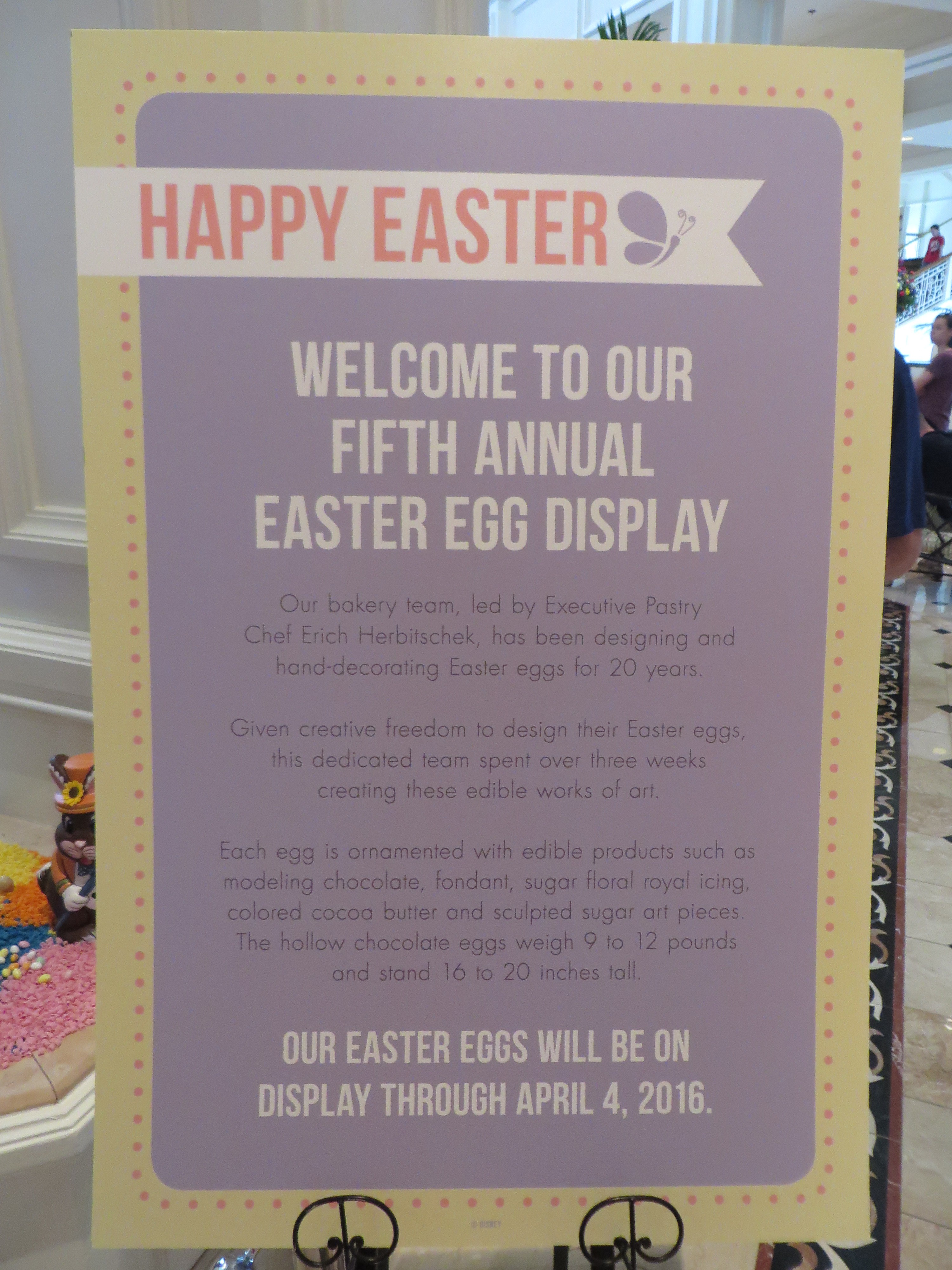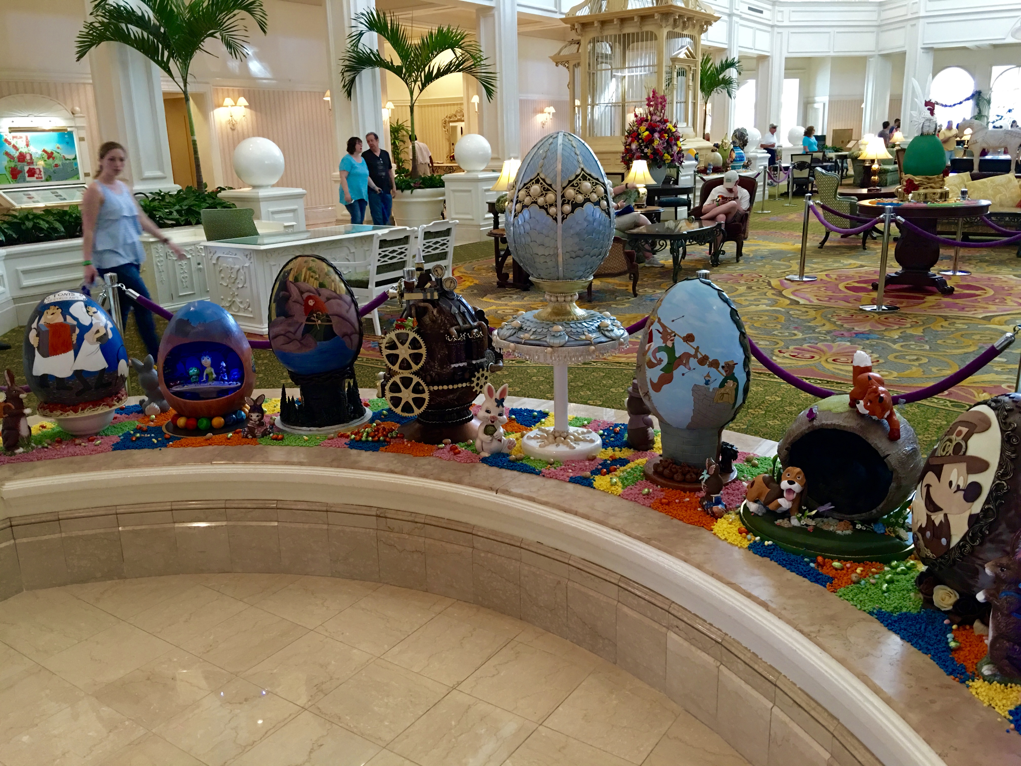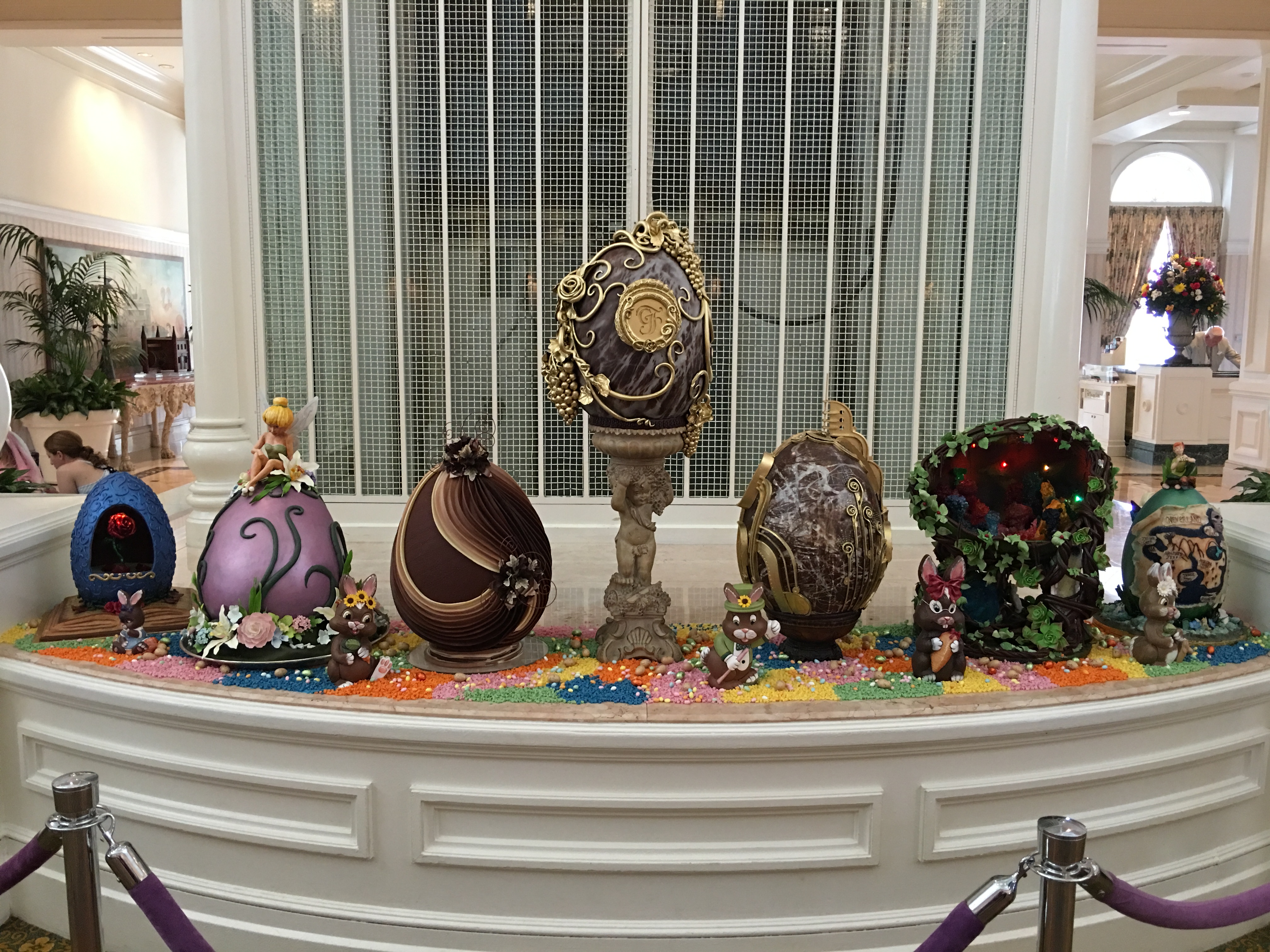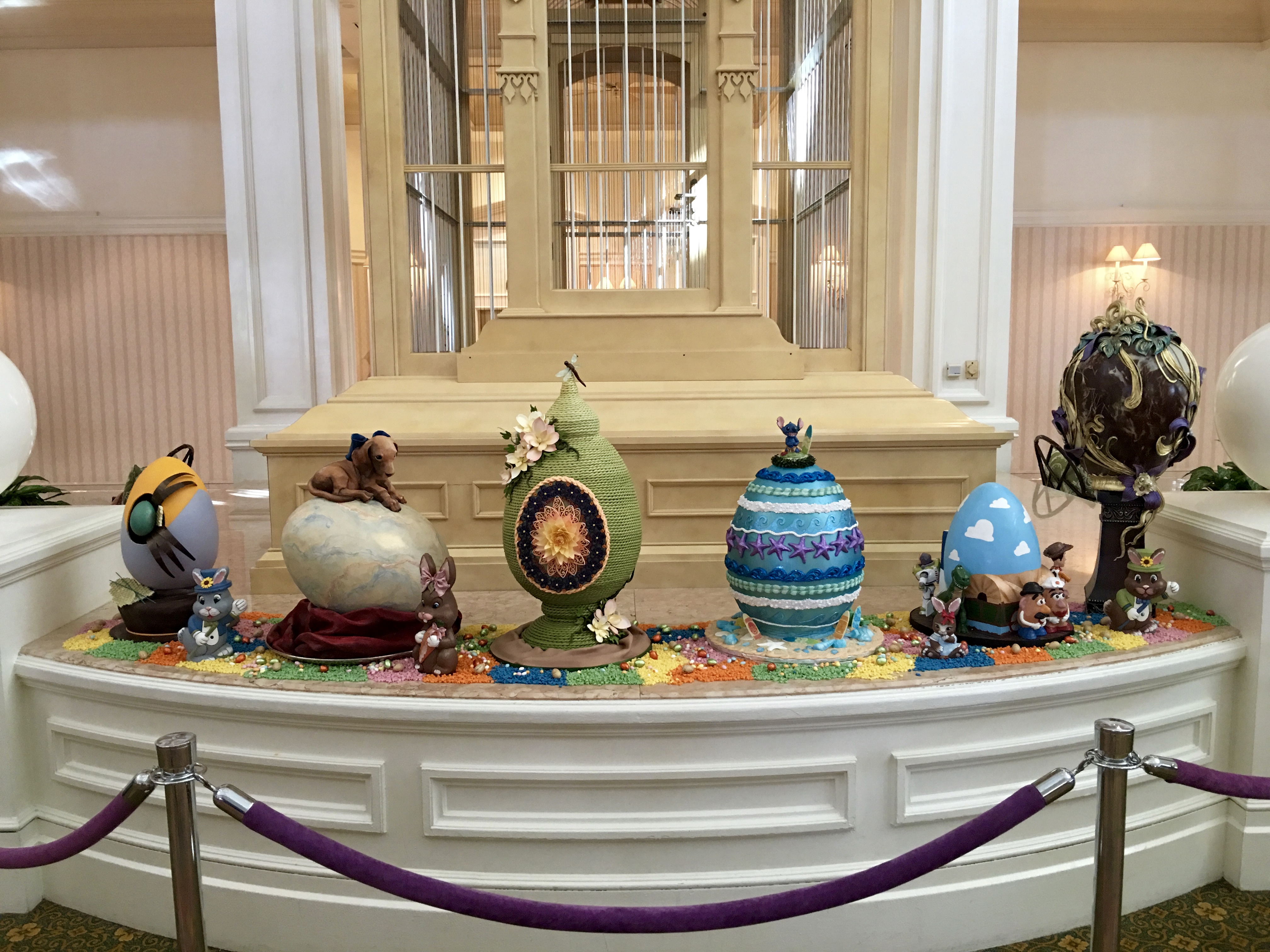 For the past few years ,the smell of chocolate has taken over the aroma of fresh flowers at Disney's Grand Floridian. What has become a tradition of mine and many other Disney fans near Walt Disney World to wake up early have a nice breakfast and see the Easter Egg Display, with this year's wowing us all beyond belief.