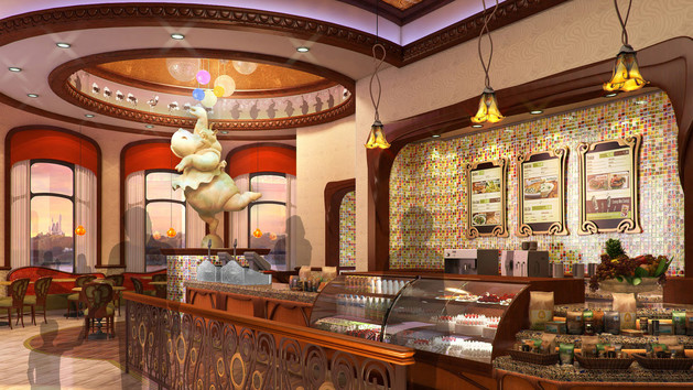 Official Description: "Grab a bite while surrounded by tutu-wearing hippos and their pirouetting pals at a location inspired by Dance of the Hours from Disney’s Fantasia! Snack on quick-service options that include a selection of pre-packaged and Grab & Go items."