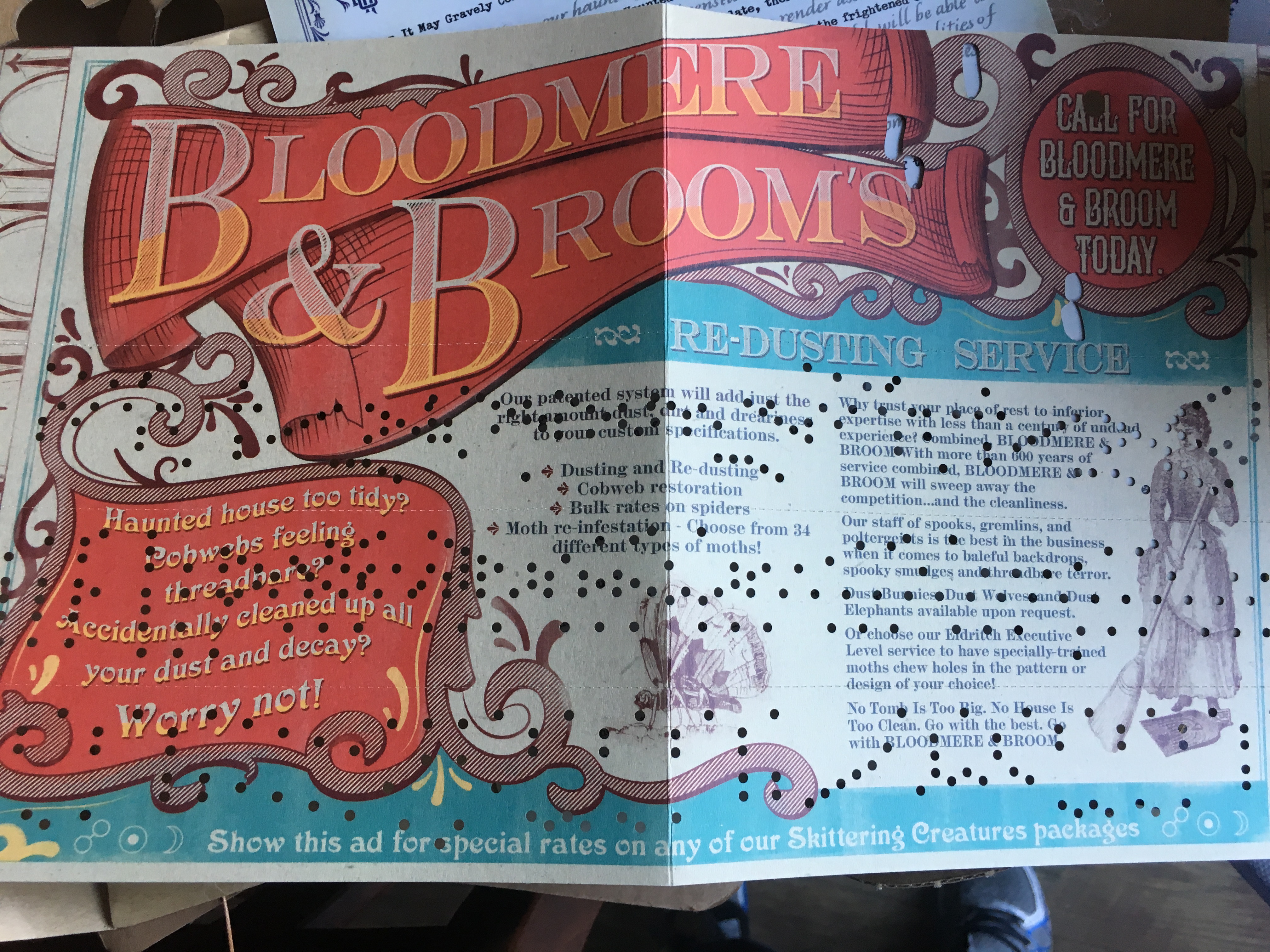Scan the Bloodmere &Broom's Re-Dusting Service and hear Victor and Sally: