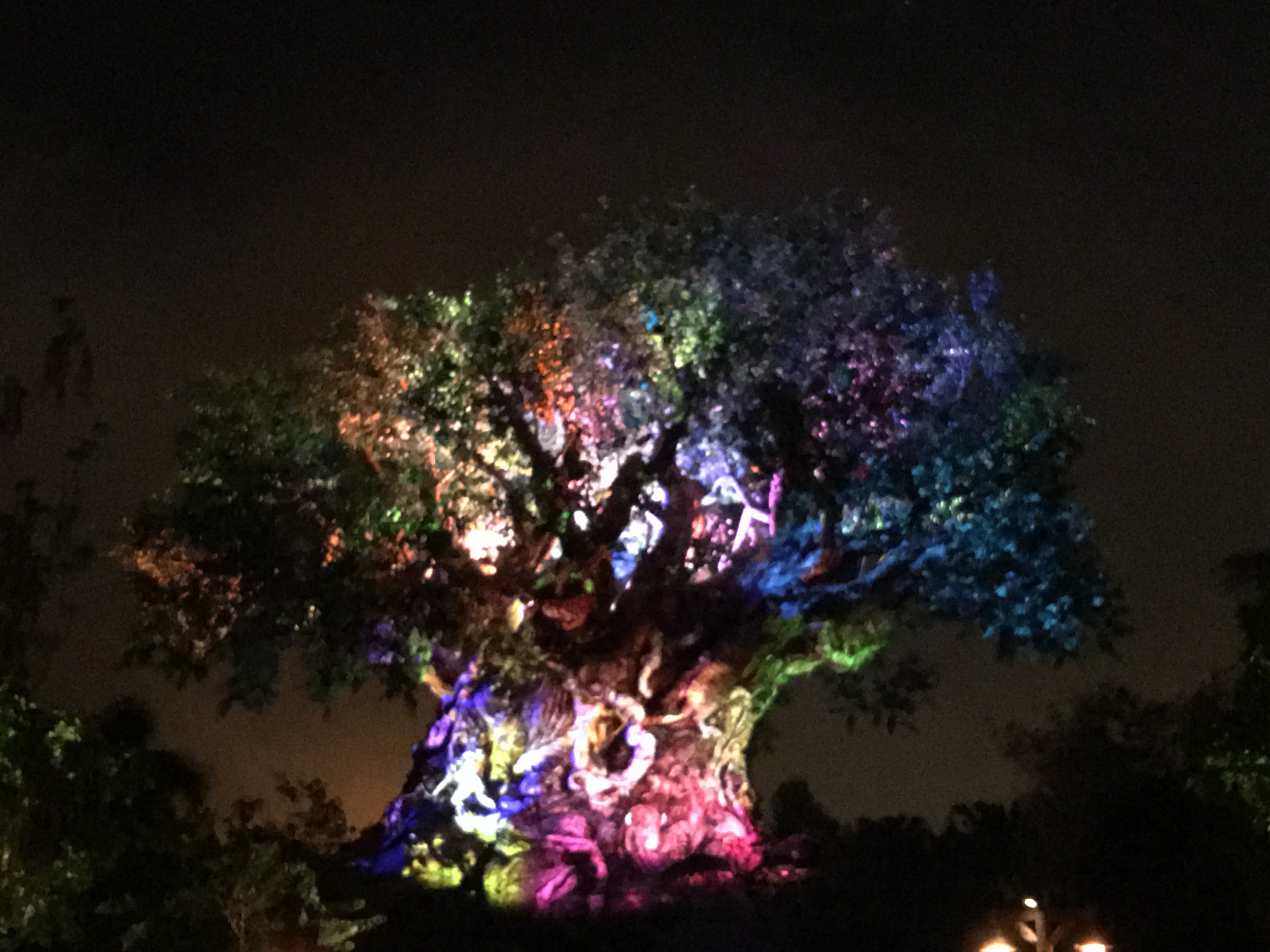 As the sun goes down night comes alive with the Tree of Life Awakens shows. Every 15 minutes or so, the Tree has one of four different shows projected on it, much like the Celebrate the Magic show at Magic Kingdom.