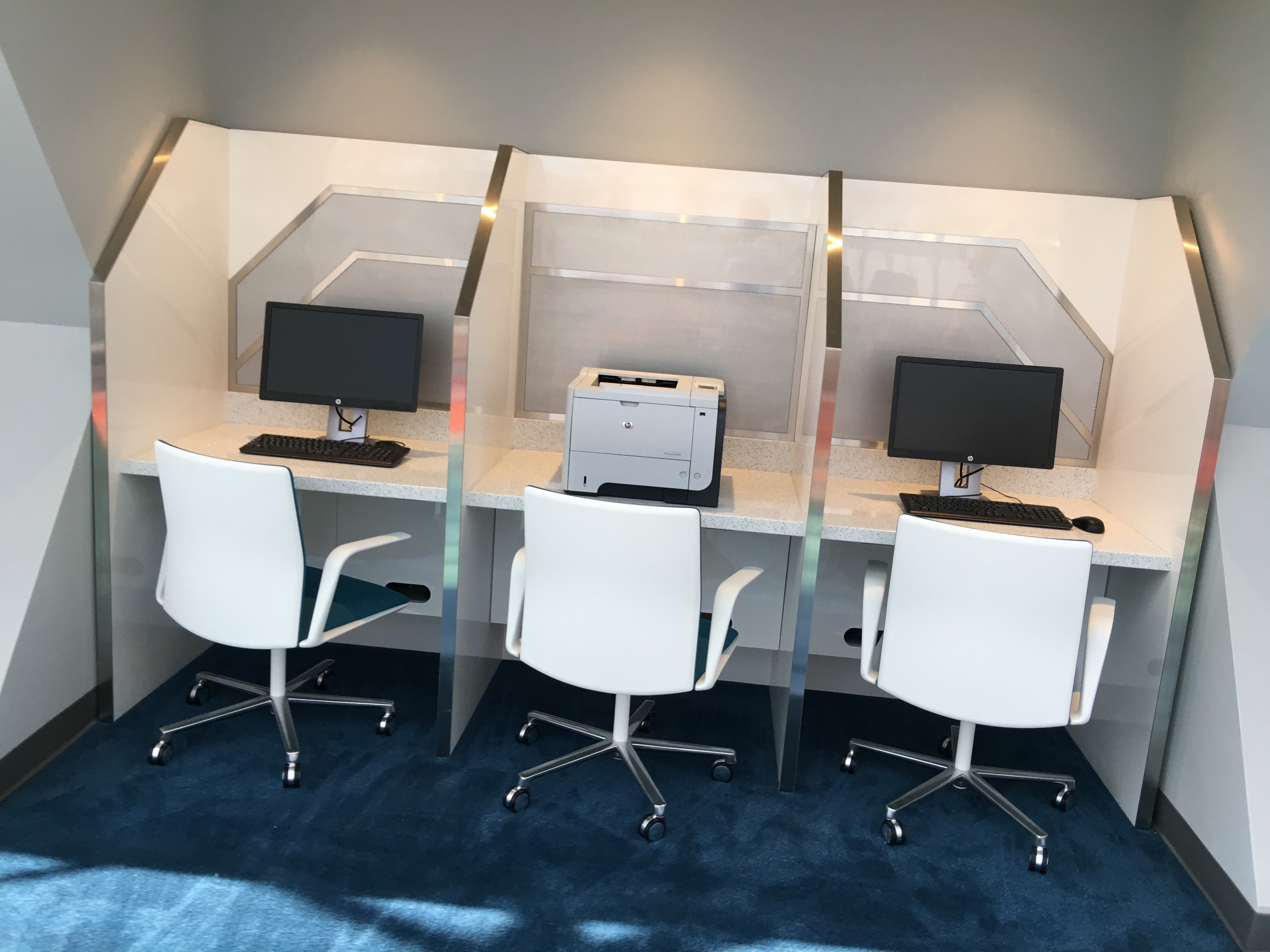 Also offered are two work stations and a printer for those last minute boarding passes or important documents that you may need copies of.