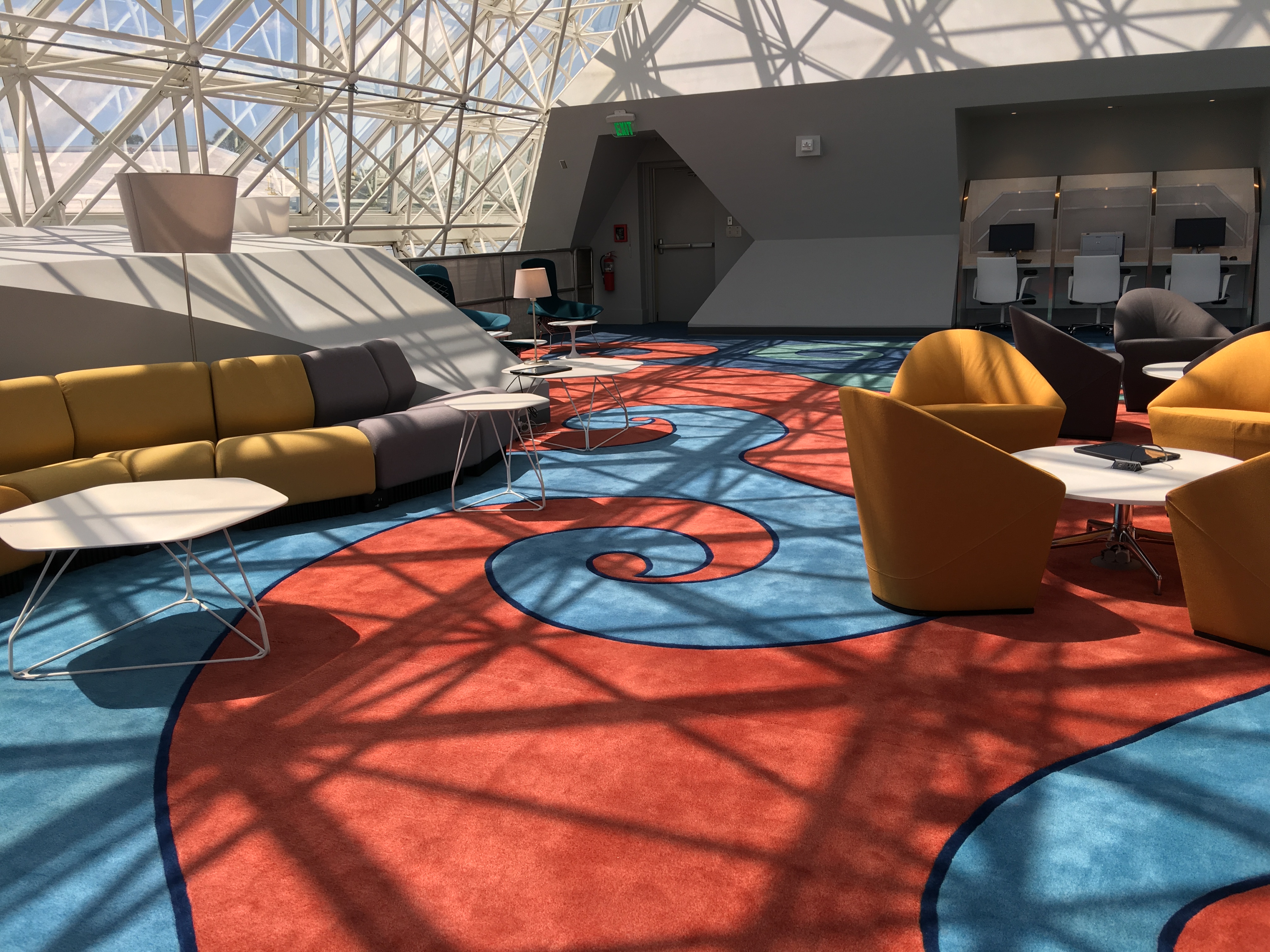The new lounge can accommodate over 100 members with seating space for about 80. However, if the lounge reaches capacity when you check in, the member and their guests can be put in a virtual queue and receive a text when space becomes available.