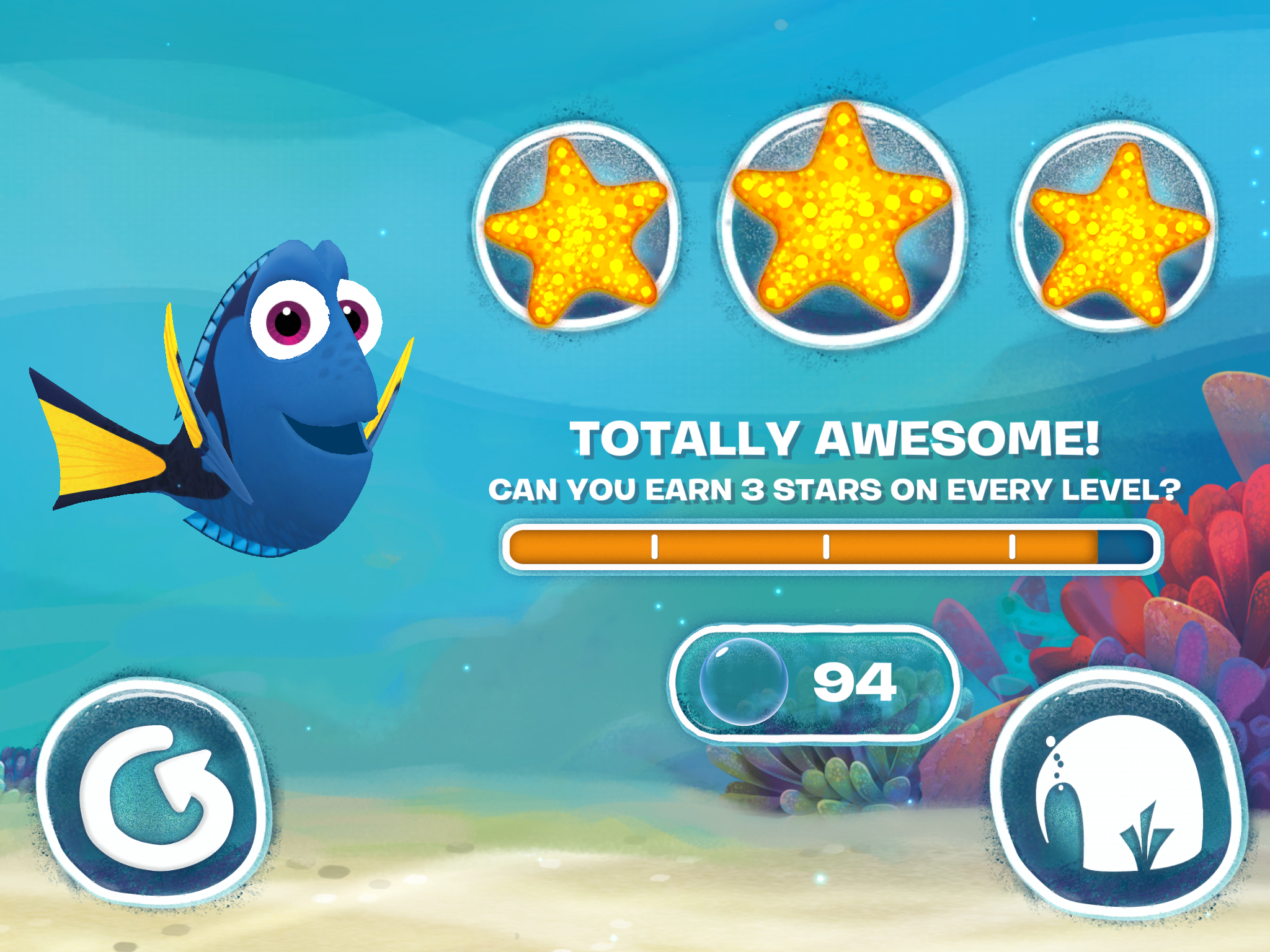 The entire family can help Dory retell stories from her past with the help from familiar characters from the original movie while collecting bubbles throughout each level to help you advance, earn stars and special prizes. Using your finger to help Dory collect bubbles and get through each maze-like level, you'll find that each level has a special task. These include escaping from a giant squid, finding your missing friends, and even jumping from tank to tank.