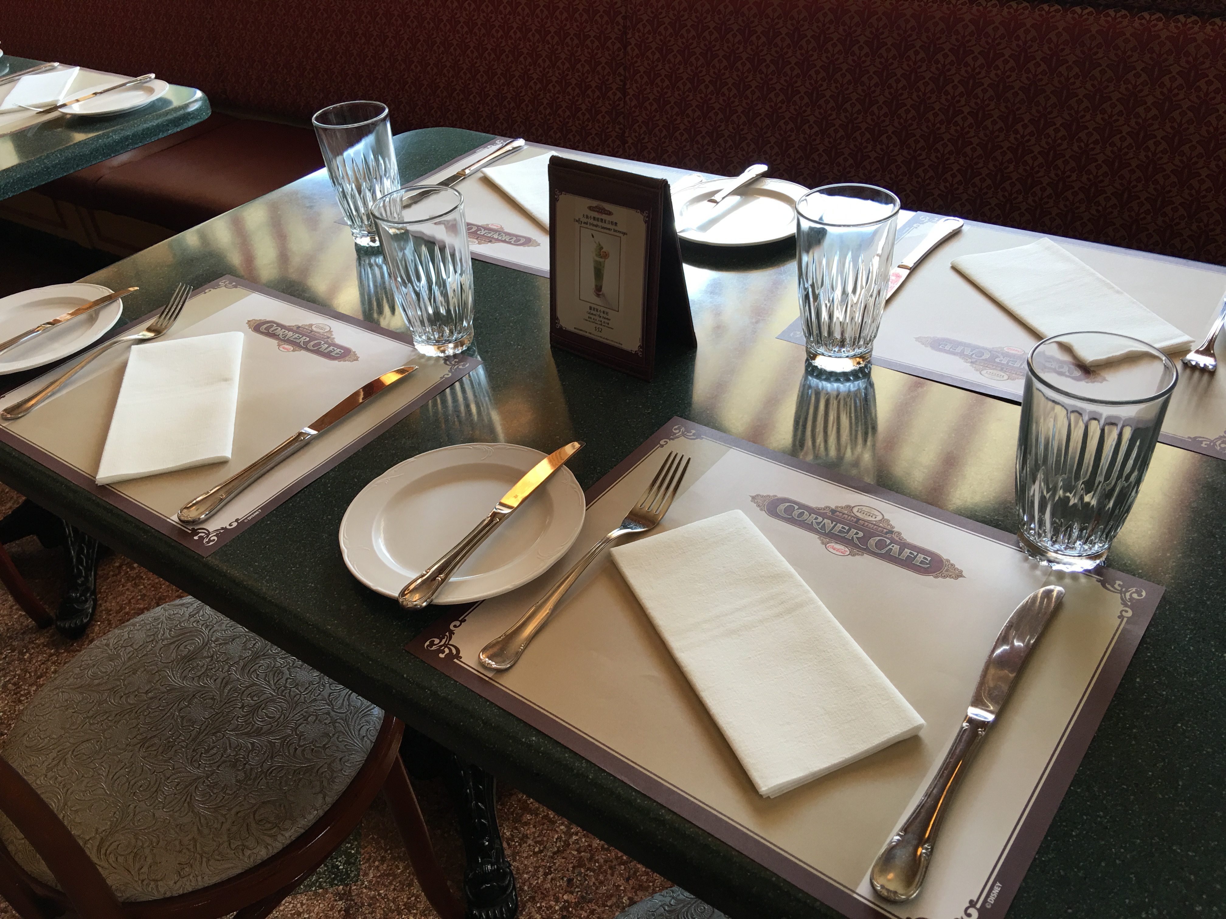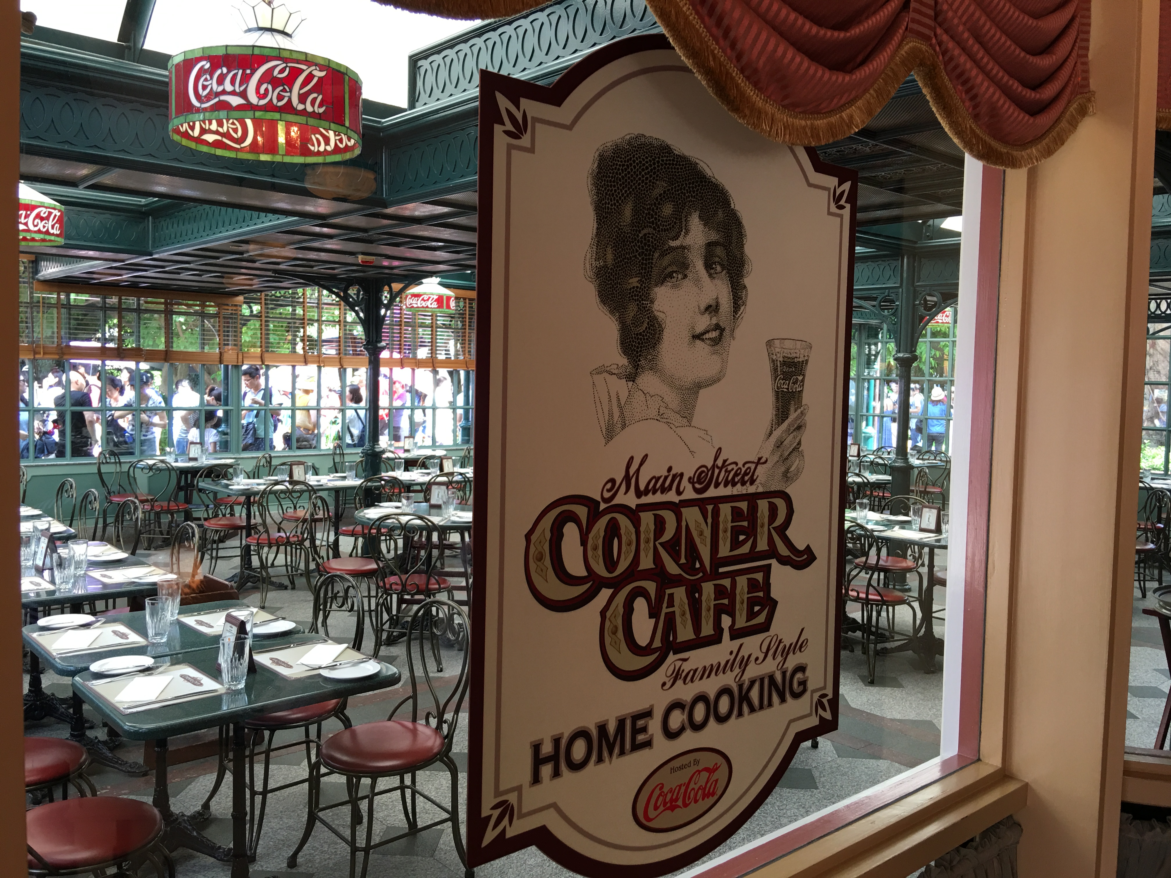 If Star Wars cookies and Korean Squid are not your top dining choices, Main Street U.S.A. is also home to two of the nicest sit-down locations in any Disney Park I have visited. The Main Street Corner Cafe is on the right where the Plaza Inn would be in Disneyland Park.