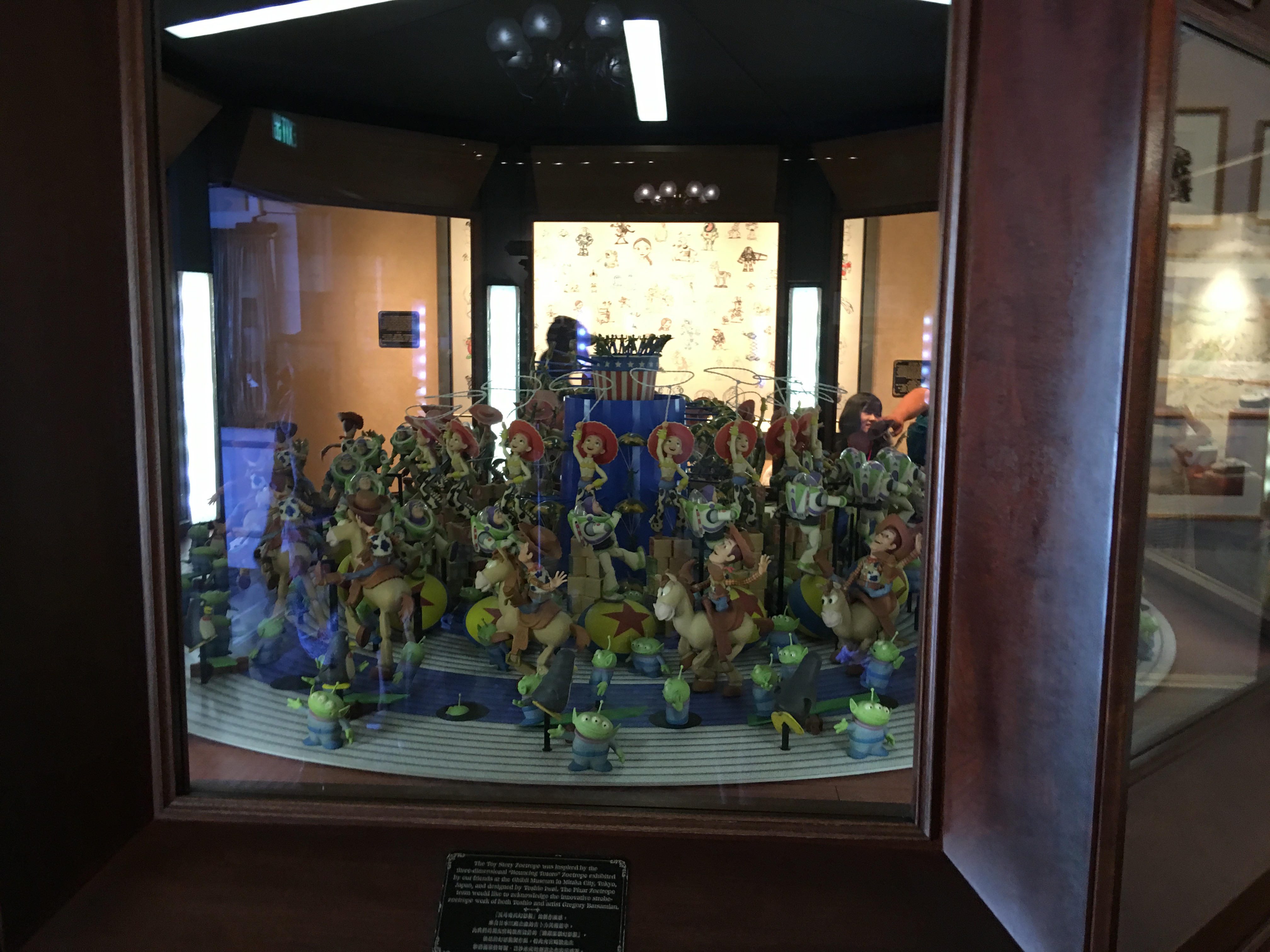 Keeping with the "Bizarro Disneyland" theme, where the Bank of Disneyland/Disney Gallery and Opera House sit in Disneyland Park is home to the Animation Academy, Baymax meet and greet, and a small history of Disney and Pixar Art of Animation display in Hong Kong Disneyland.