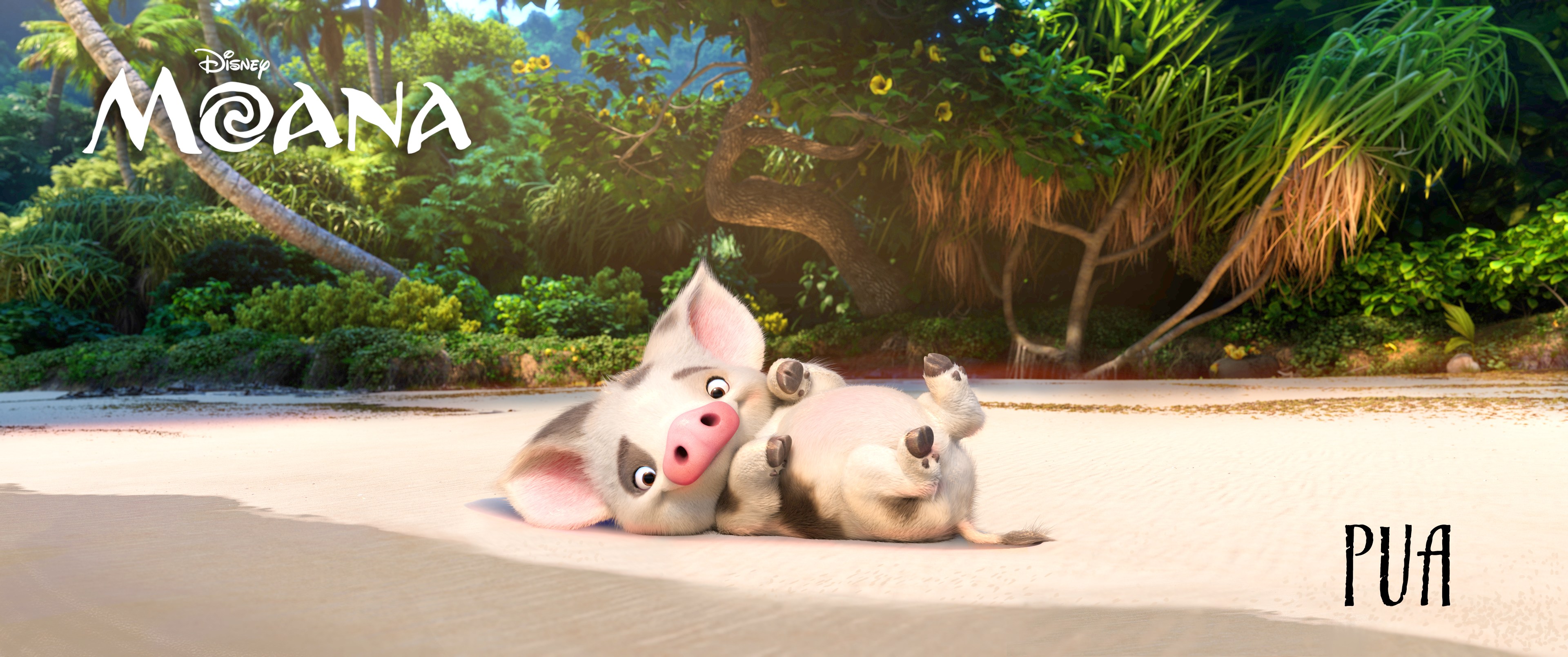 Pua the pig – ‘cutest animal’ Disney has ever created. The animation team showed a ‘calisthenic test’ that put Pua through various movements to prove that the character could convey emotion. Pua was a definite crowd favorite.Hei Hei the rooster (Alan Tudyk, Big Hero 6, Zootopia, Rogue One) – described as the ‘dumbest character’ Disney has ever created, to create comic relief. Originally smart and devious (Hei Hei was shown in a screen test stealing food from Pua), the story team felt that Hei Hei worked better with a much lower IQ.
