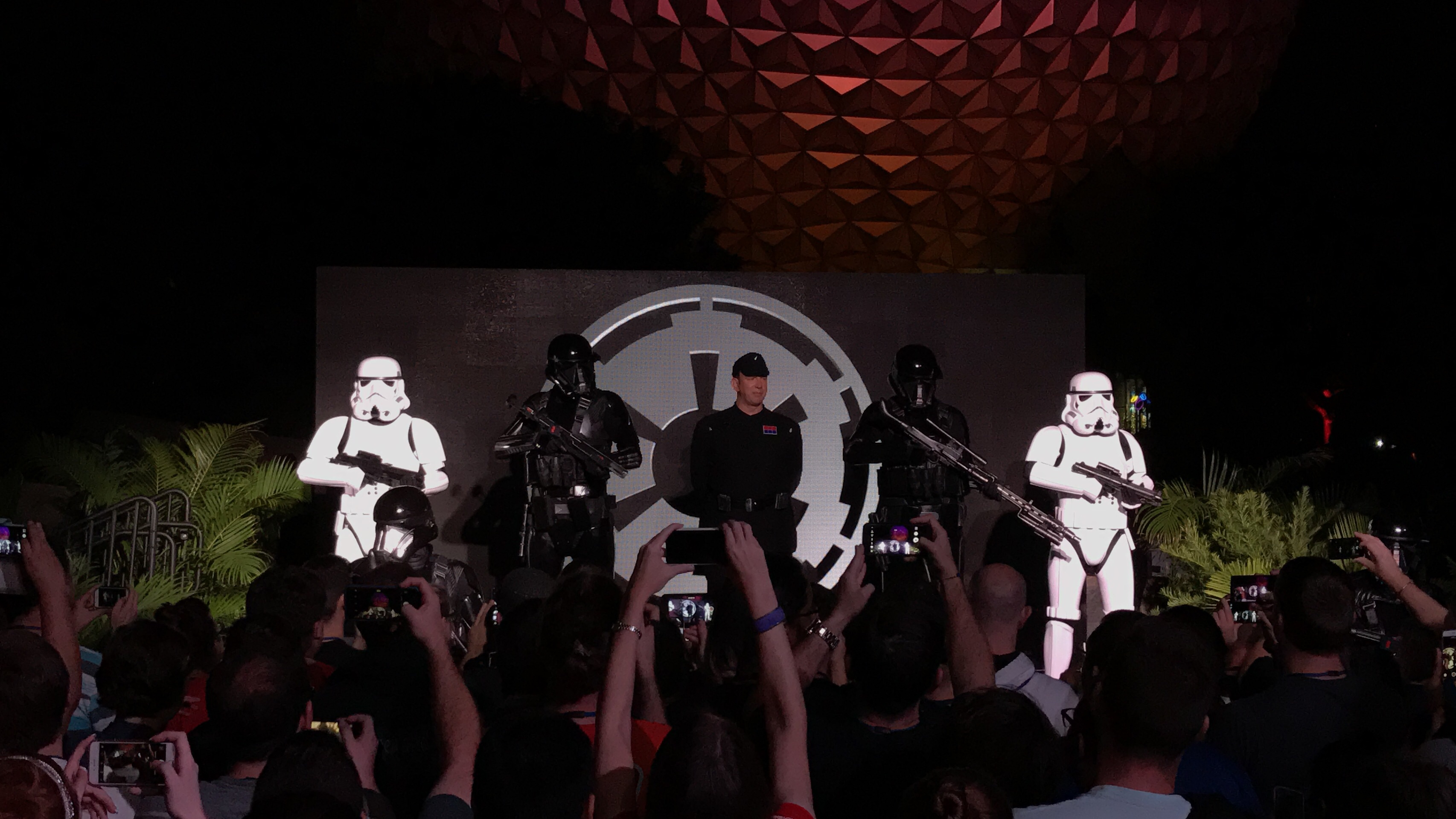 Tonight, to promote the upcoming release of Rogue One: A Star Wars Story, Disney Parks transformed Epcot's iconic Spaceship Earth into the Death Star for one night only. They also took this opportunity to announce new Star Wars experiences coming to Disney's Hollywood Studios.