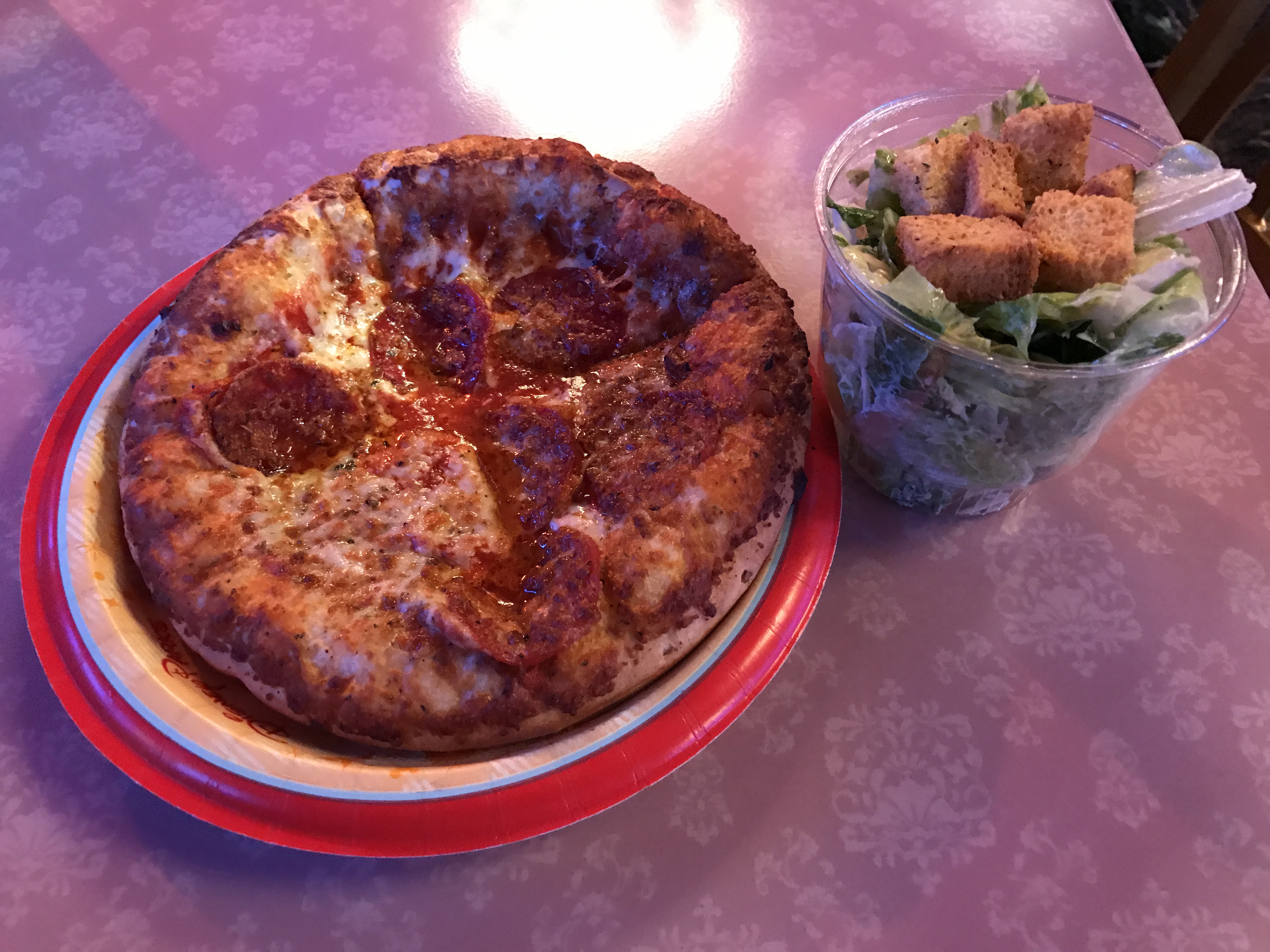 As you can see, it is hard to believe this used to be Pizza Planet. Unfortunately, some things never change: the food. The pizza is still greasy, the antipasto salad had one piece of ham and one salami, and the other options are not much of an improvement over what was there before — well, except they added a cannoli!