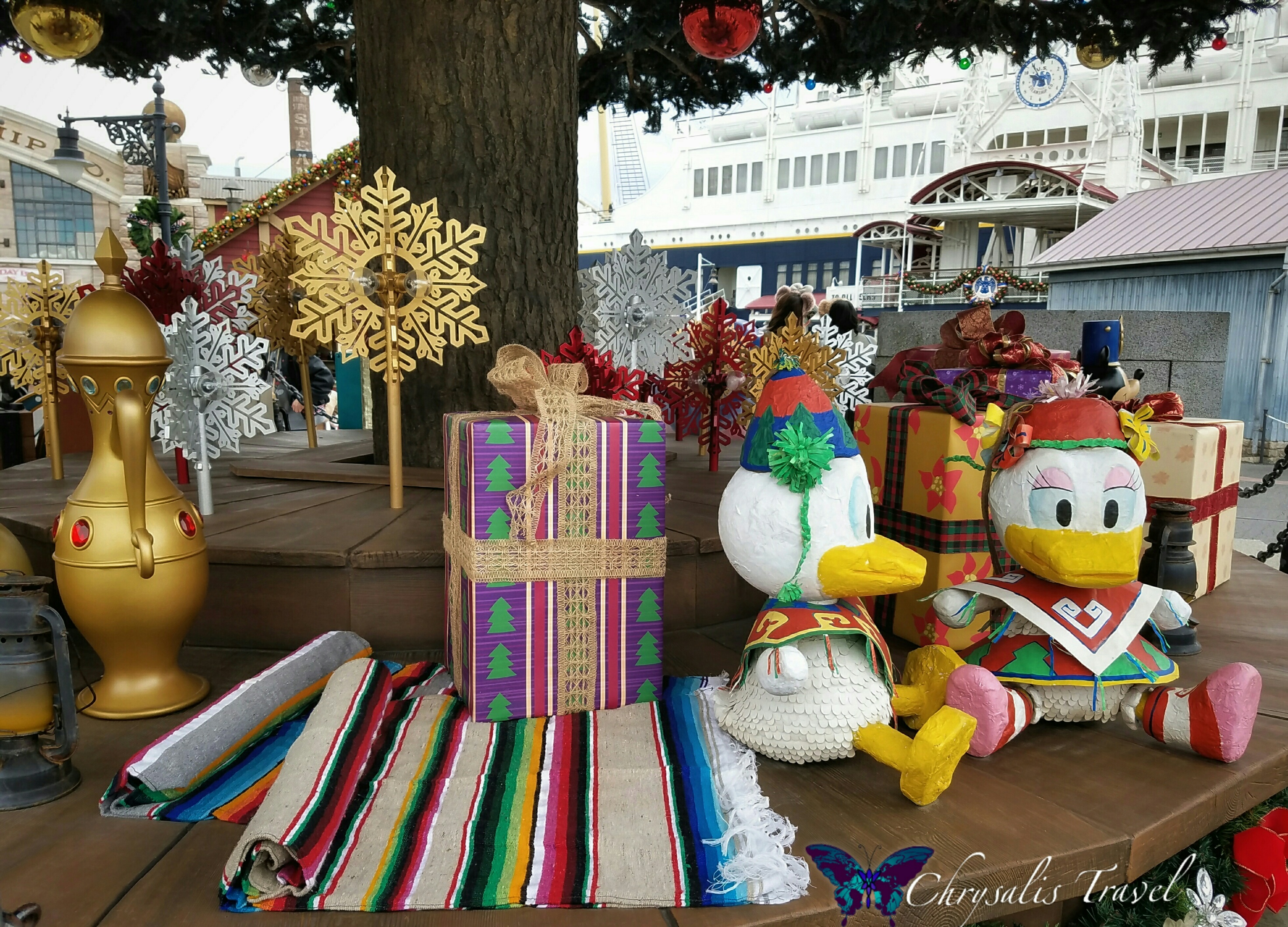 Many of the decorations at Tokyo DisneySea center around the American Waterfront with its massive Christmas tree. The lowest branches of the tree stand much higher than the guests coming up for a closer look. Tucked underneath are representations of each ‘land’ at Tokyo DisneySea.